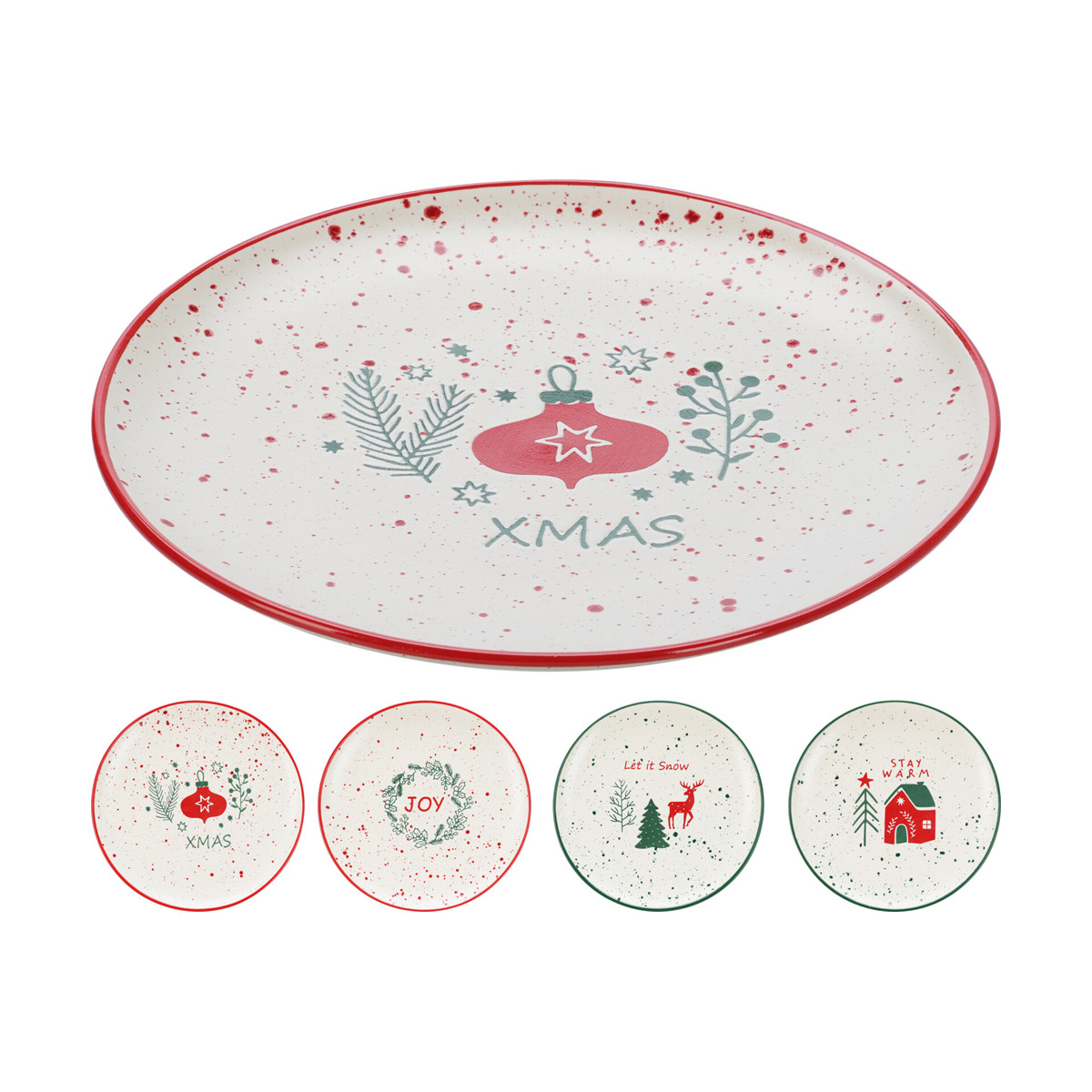 Piatto Tondo Puntinato in Ceramica Fantasia Natale
