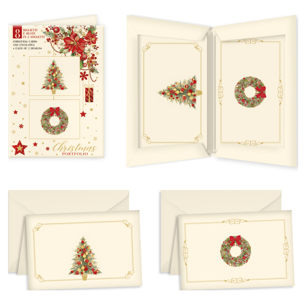 Cartoncini Doppi Albero e Ghirlanda (8 Pezzi)