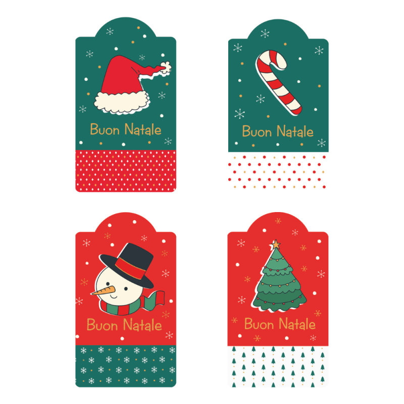 Chiudipacco Buon Natale Rossi e Verdi (4 Pezzi) Albero