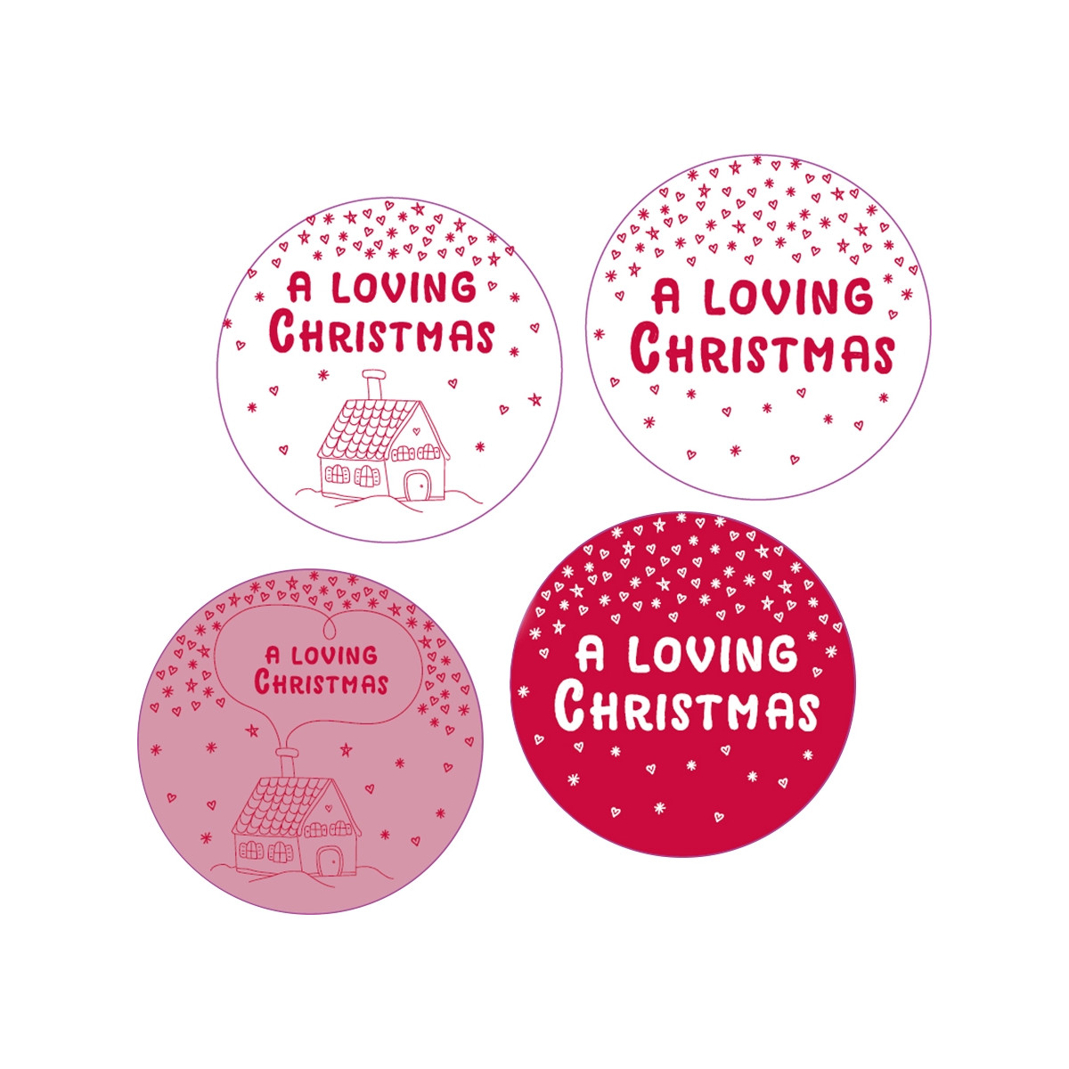 Etichette tonde con scritta loving christmas (25 pezz)i