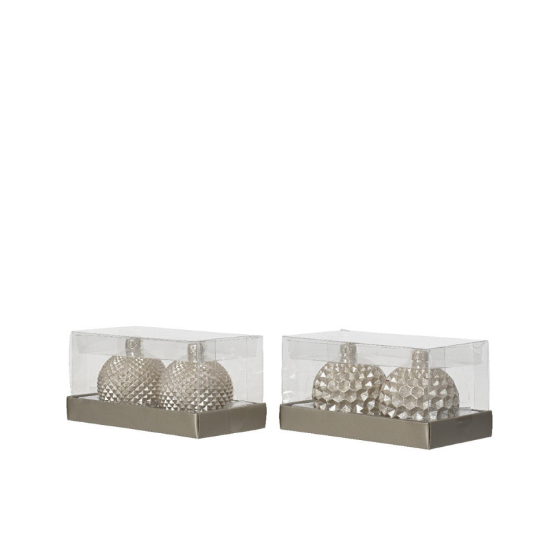 CANDELA A FORMA DI PALLINA CON GLITTER CHAMPAGNE (2 PEZZI)