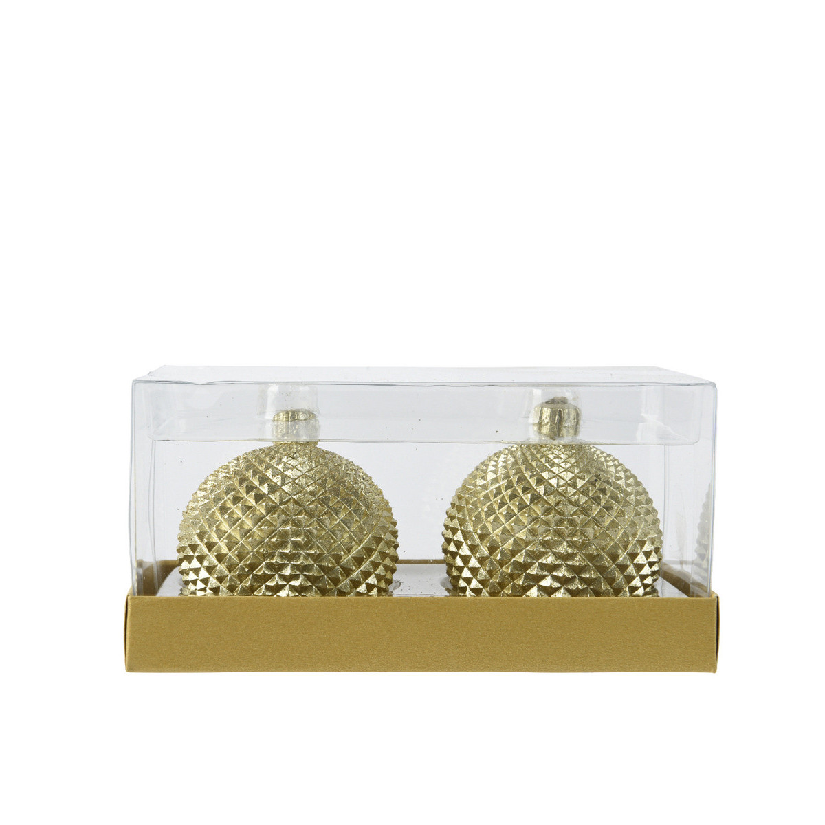CANDELA A FORMA DI PALLINA CON GLITTER ORO (2 PEZZI)