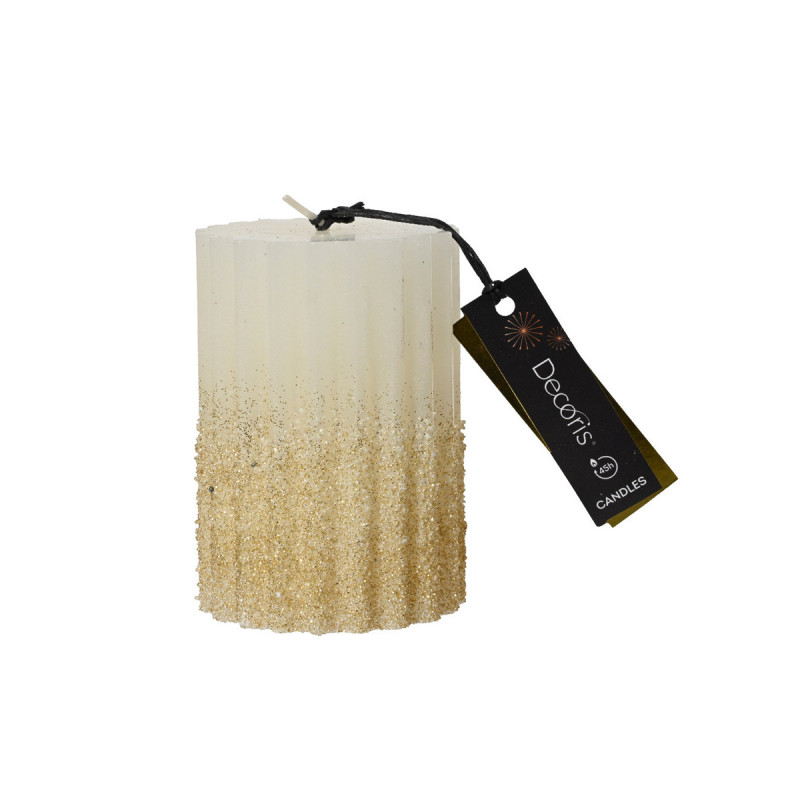 CANDELA PLISSETTATA BIANCA CON GLITTER ORO 10CM