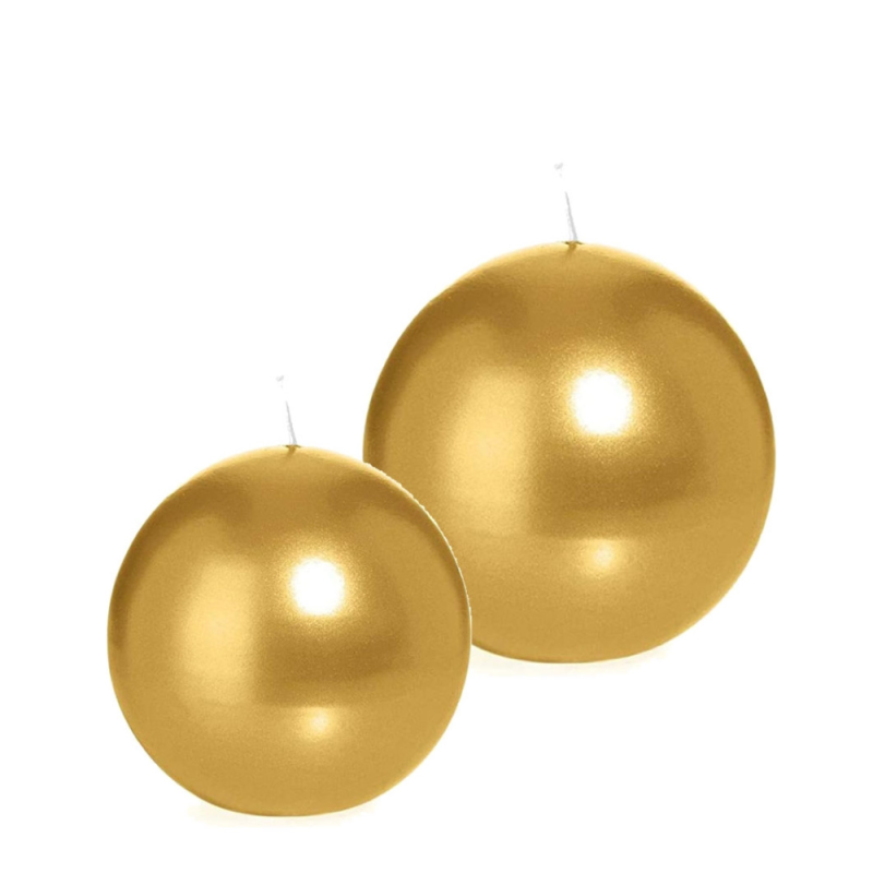 Candela sferica in tinta unita color oro. Candele ideali come decorazione di centritavola, case, uffici, negozi,