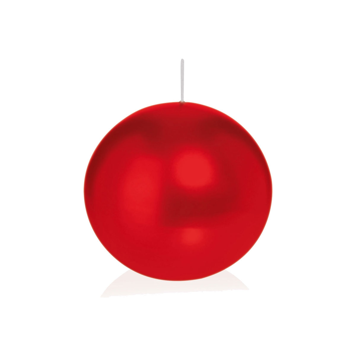 Candela sferica in tinta unita color rosso. Dimensione 6CM. Candele ideali come decorazione di centri-tavola, case, uffici, negozi, cerimonie, eventi, matrimoni.