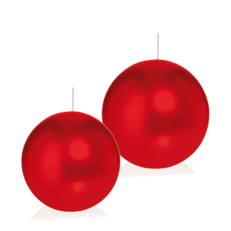 Elegante candela sferica nel colore rosso fuoco, un regalo perfetto per impreziosire ogni arredo con un tocco di eleganza. Perfetta come decorazione di centri tavola, case, uffici, negozi, cerimonie, eventi, matrimoni.