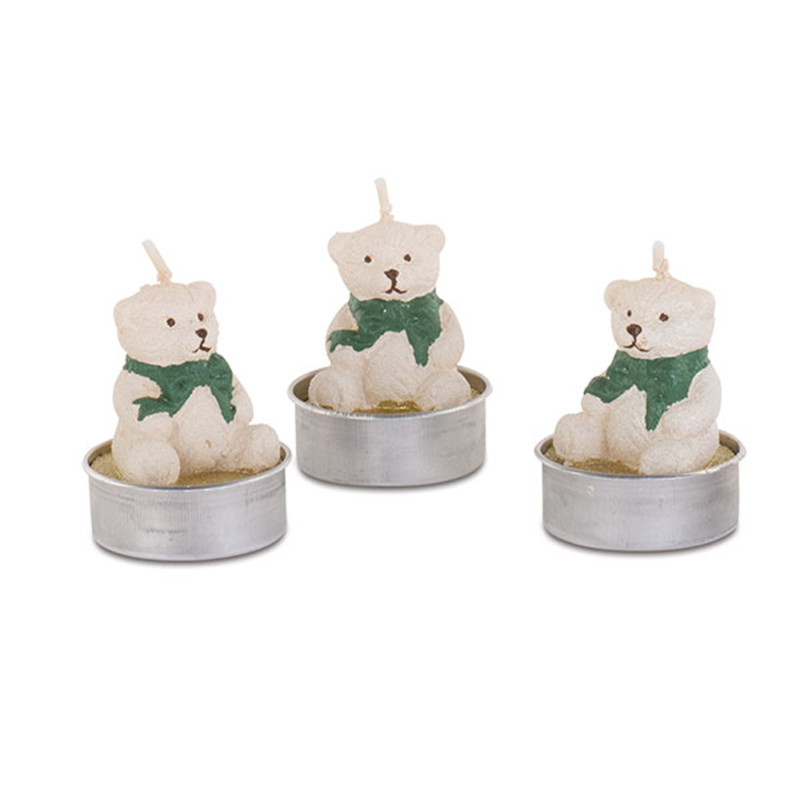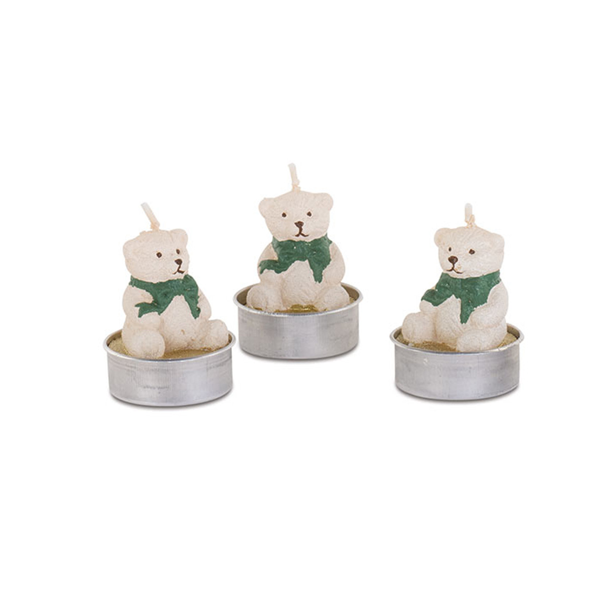 T-LIGHT ORSETTI CON FIOCCO VERDE (6 PEZZI)