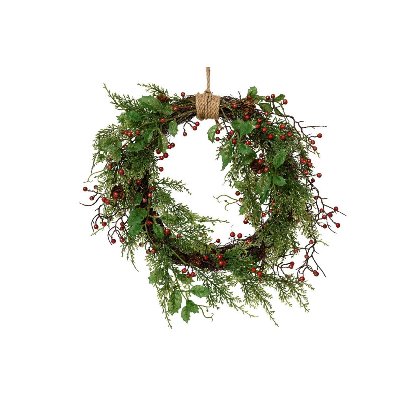 CORONA IN SALICE CON FOGLIE E BACCHE 40CM