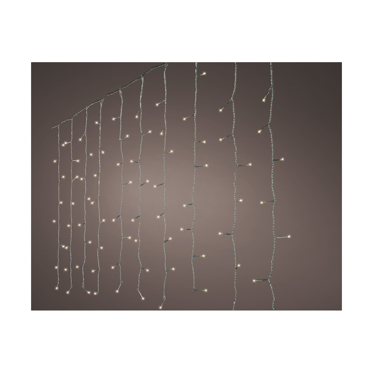 Tenda luminosa composta da 240 led per uso esterno. La tendina ha 12 funzioni di memoria regolabili con controller. Ideale per decorare vetrine di negozi e cornicioni.