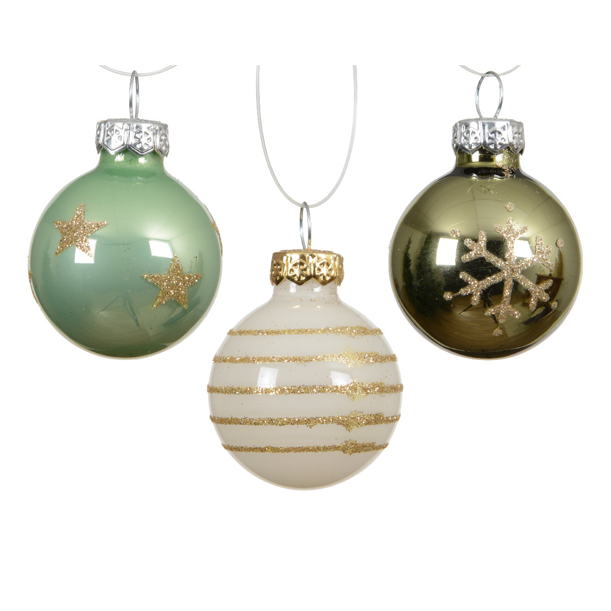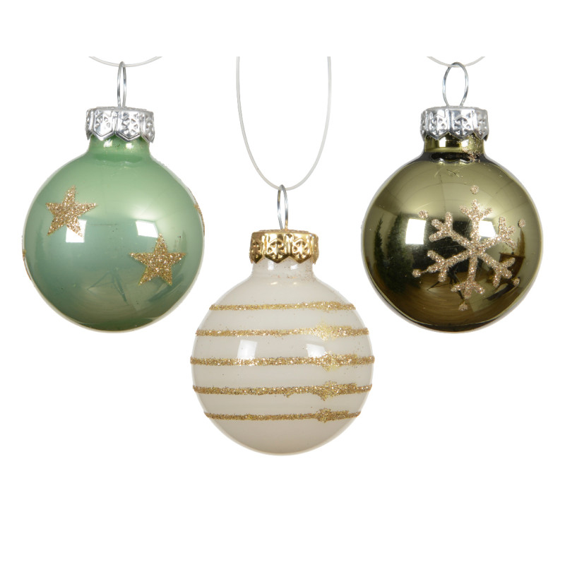 Palline in Vetro Fantasia Verde Panna 3cm (9 Pezzi)