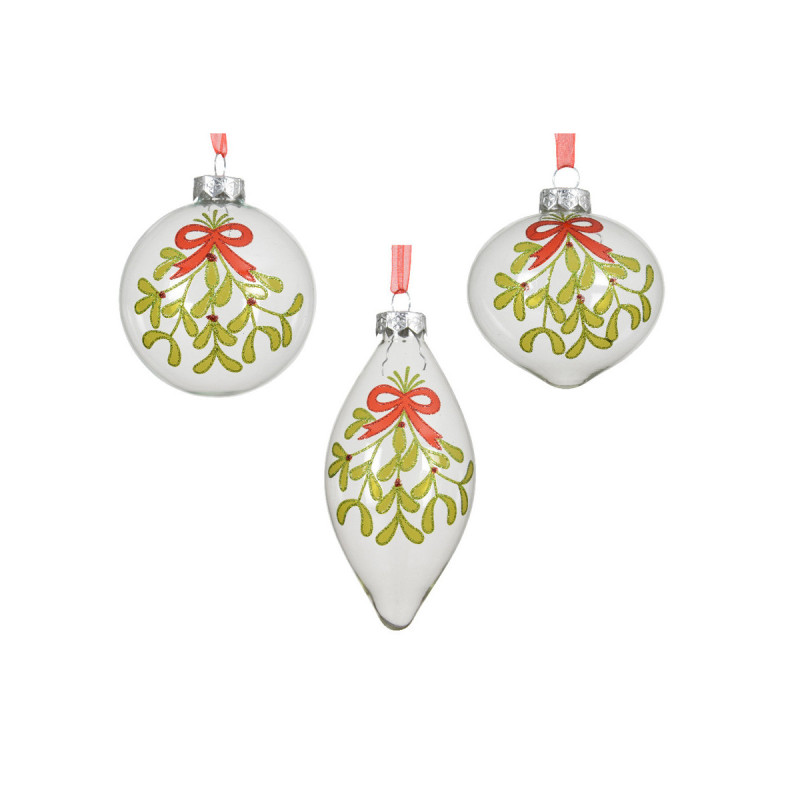 SFERA IN VETRO 8CM CON DECORO FOGLIE