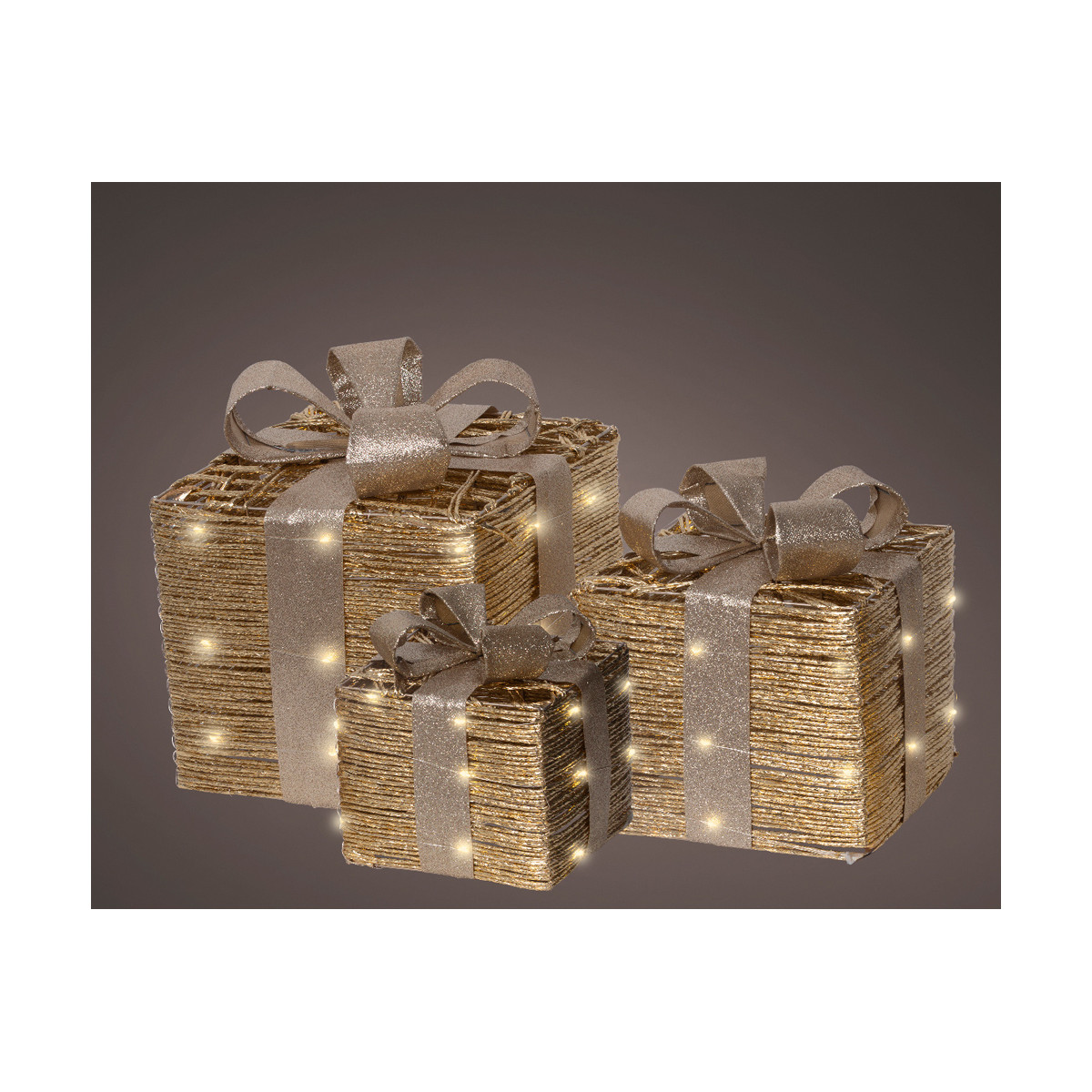 PACCHI REGALO LED DORATI (3 PEZZI)
