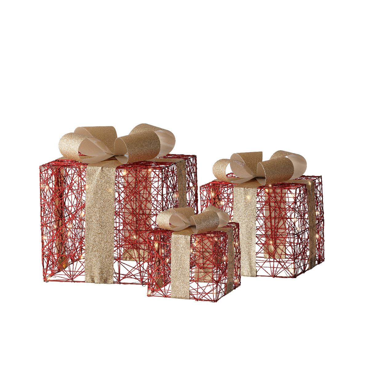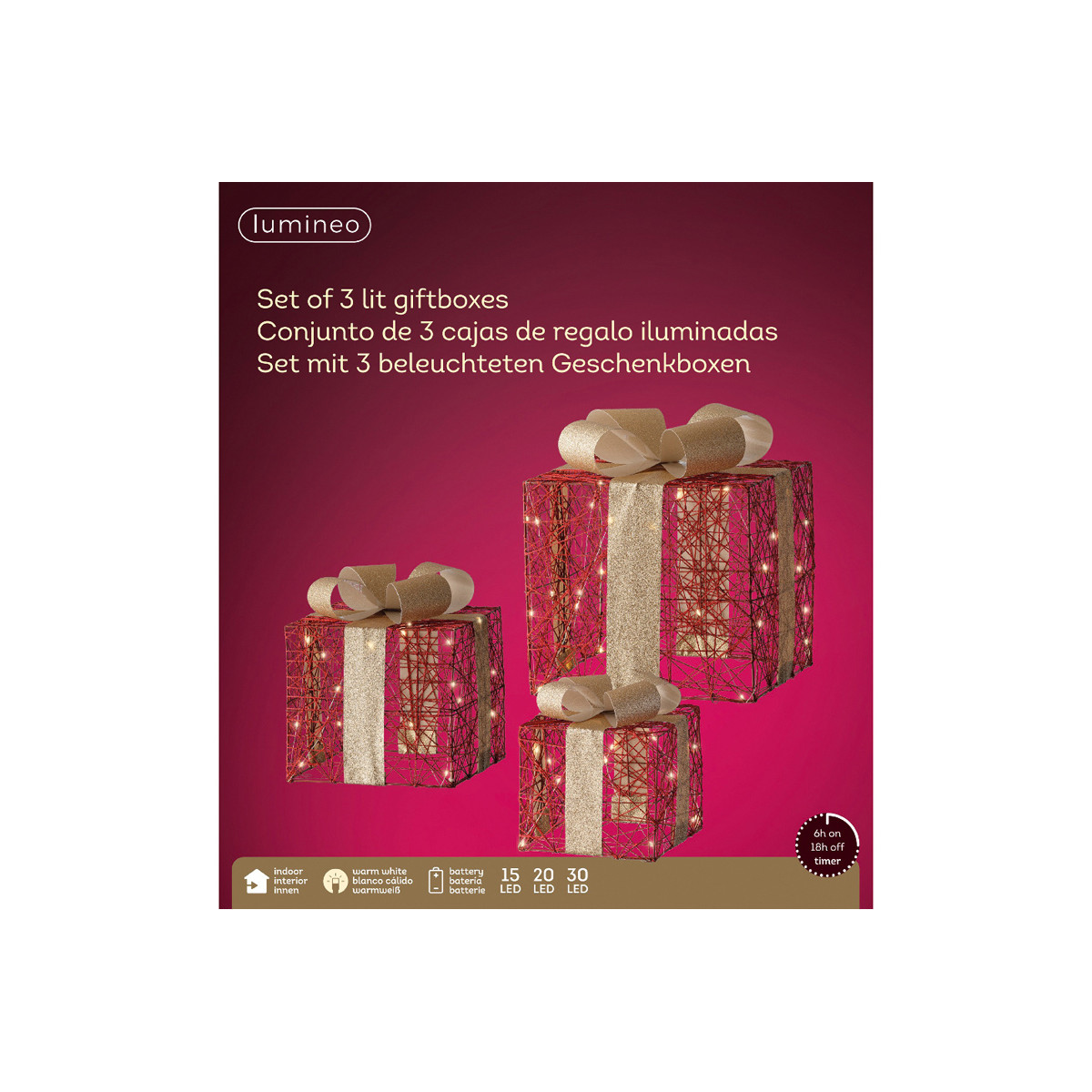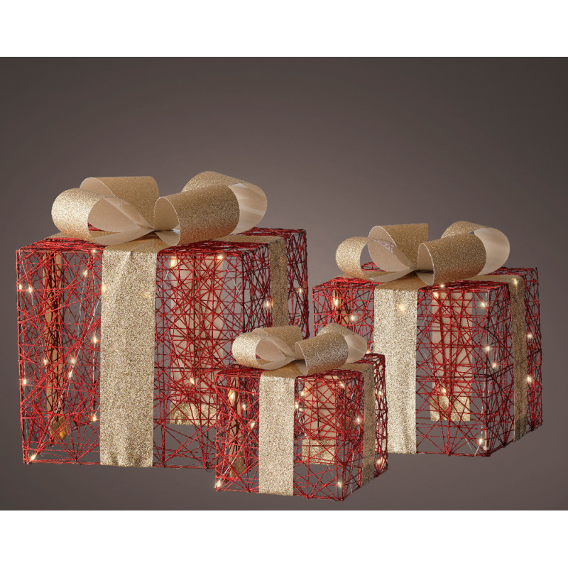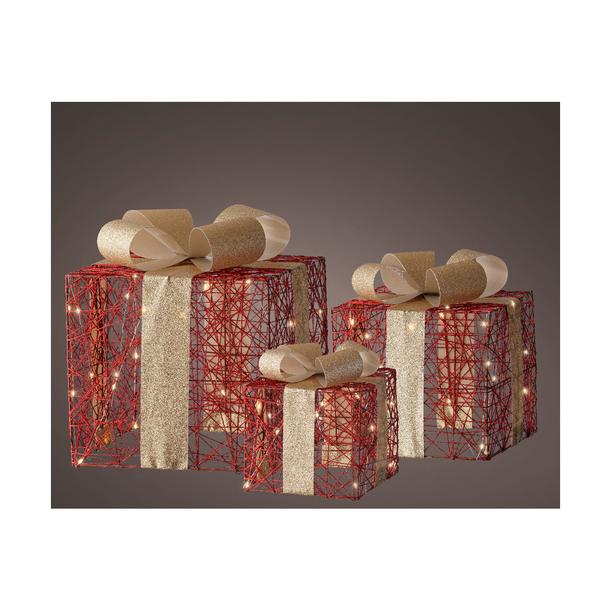 Pacchi Regalo Led Rossi Decorativi (3 Pezzi)