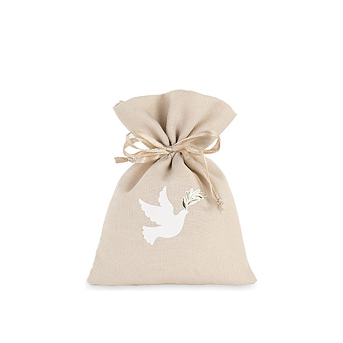 Sacchettino portaconfetti con stampa colomba, beige. Confezione da 12 pezzi.