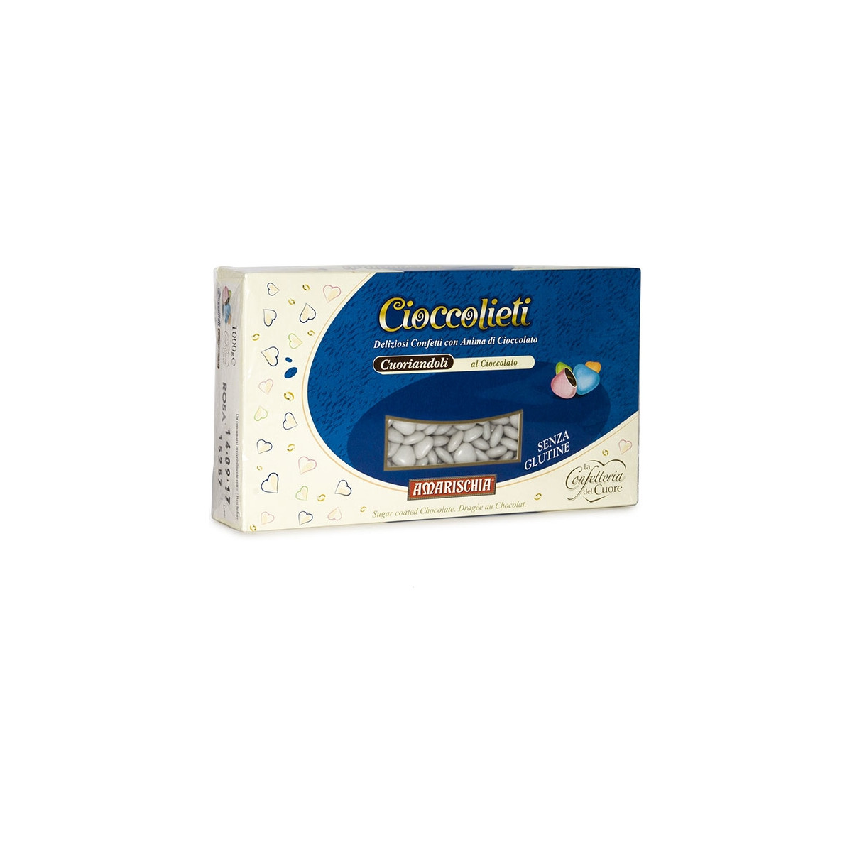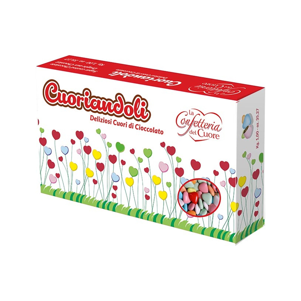 Cuoriandoli cioccofondente. Deliziosi confetti a forma di cuoricino con anima di cioccolato fondente.