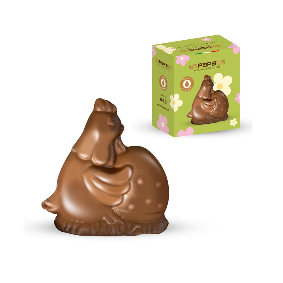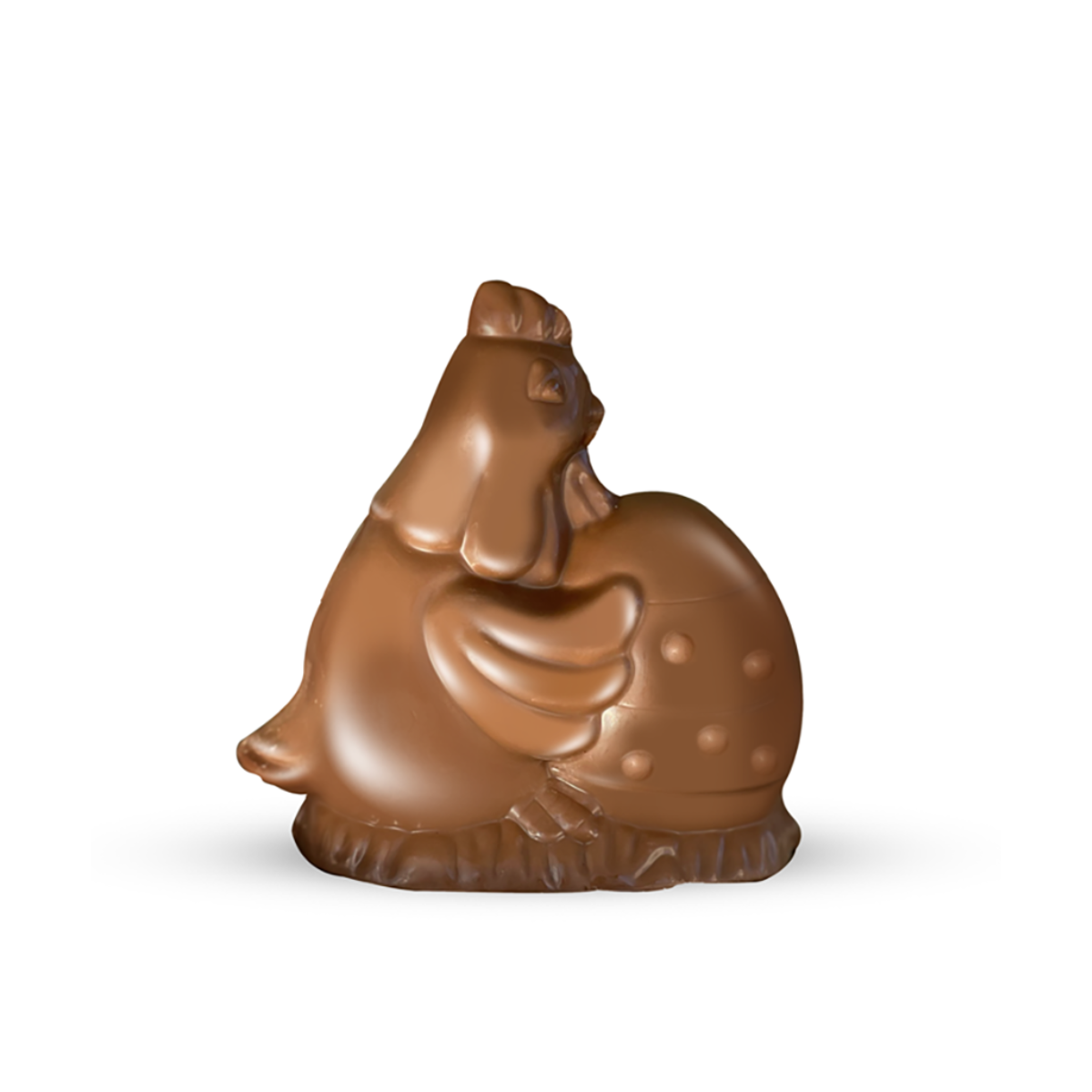 Gallina pasquale in cioccolato al latte, ideale per allestimenti di Pasqua, regali e confezioni dolci stagionali.