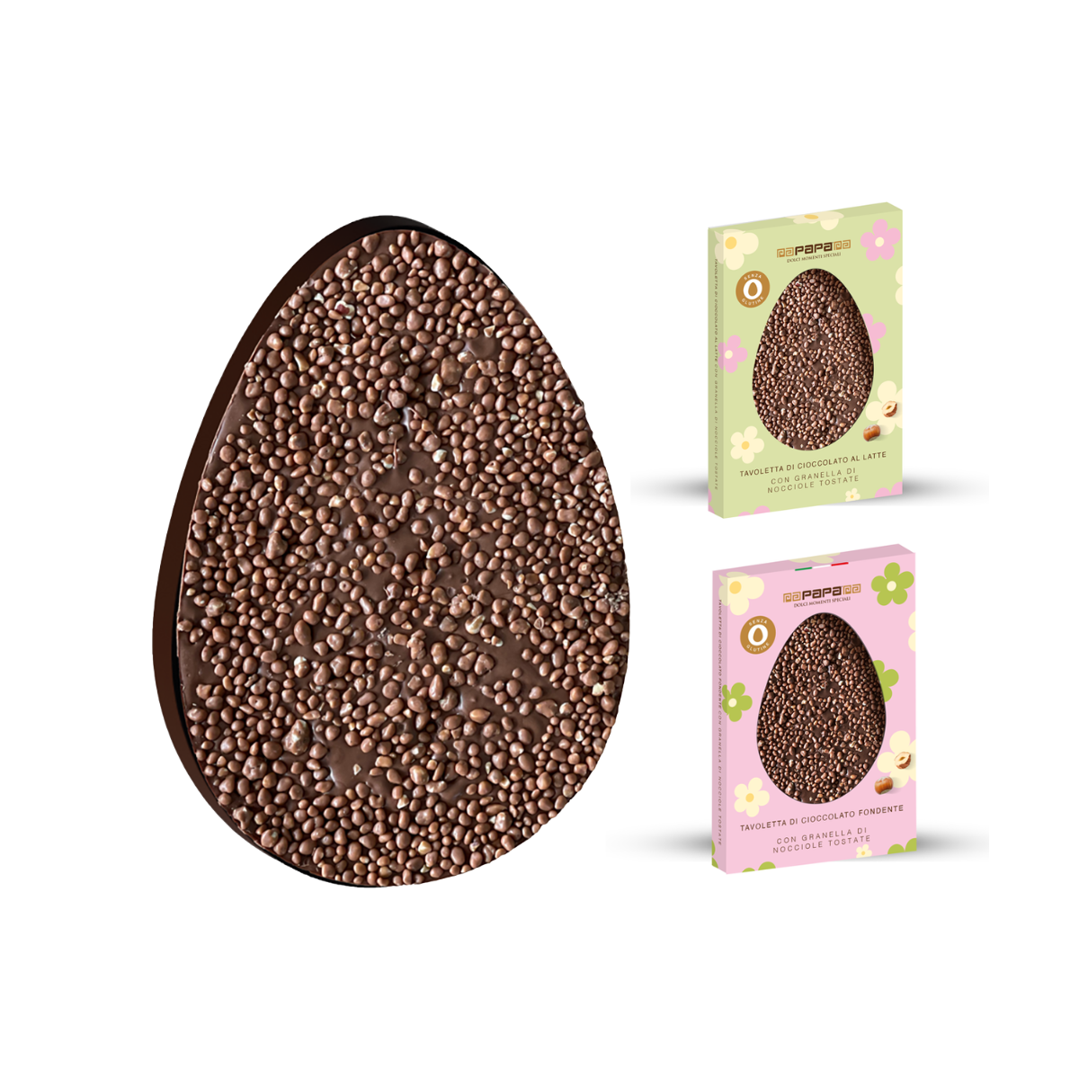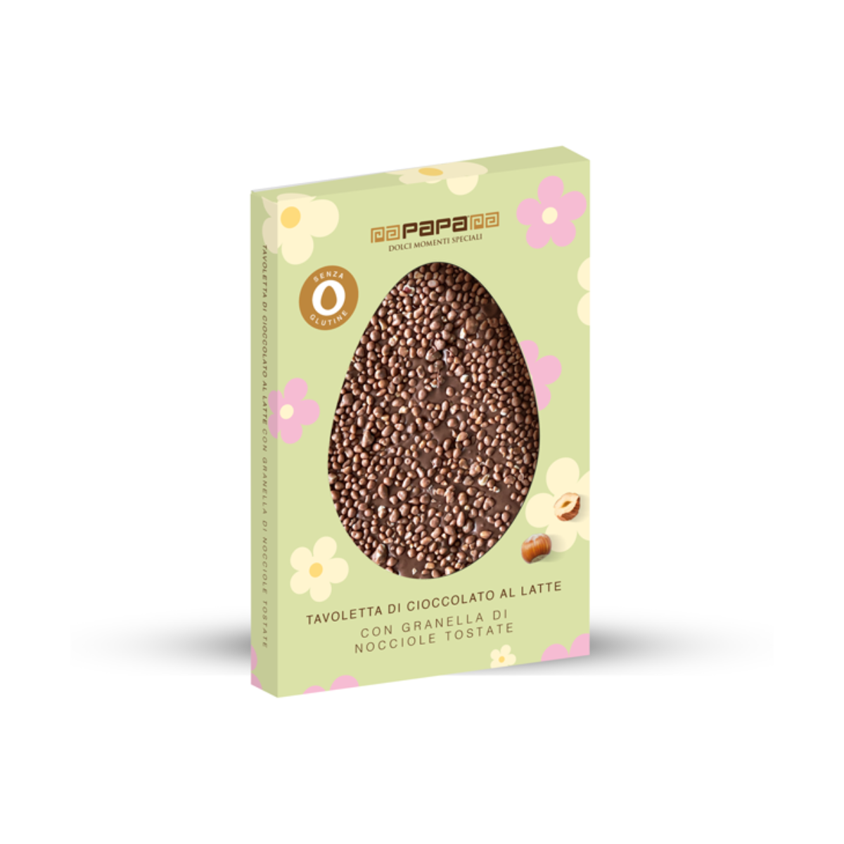 Perfetta per cesti regalo, confezioni primaverili, sweet table e vetrine stagionali, unisce la golosità del cioccolato alla croccantezza della granella di nocciole, offrendo un’esperienza di gusto ricca e apprezzata.