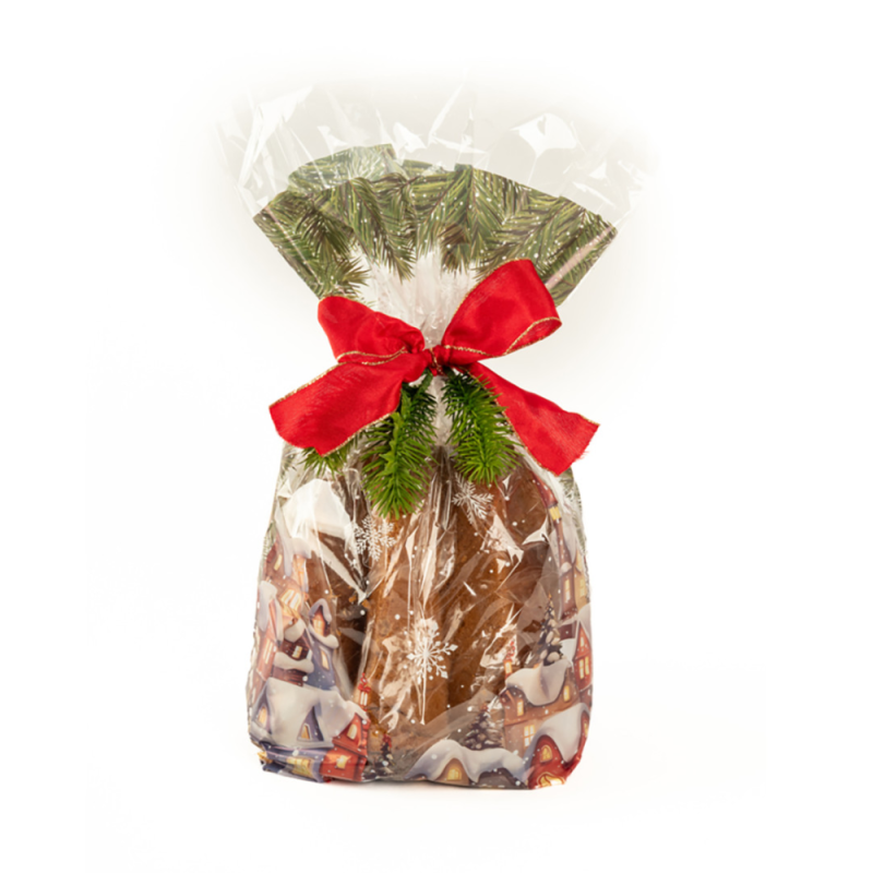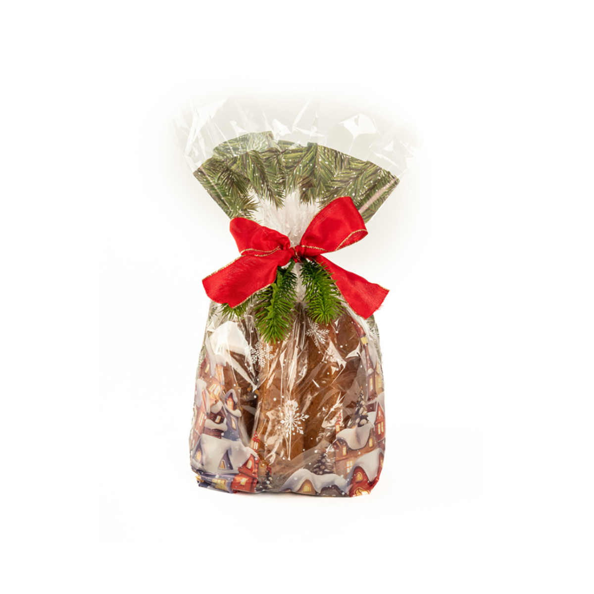 Buste in polipropilene con stampa paesaggio innevato. Sono ideali per confezionare panettoni artigianali in modo pratico e decorativo.