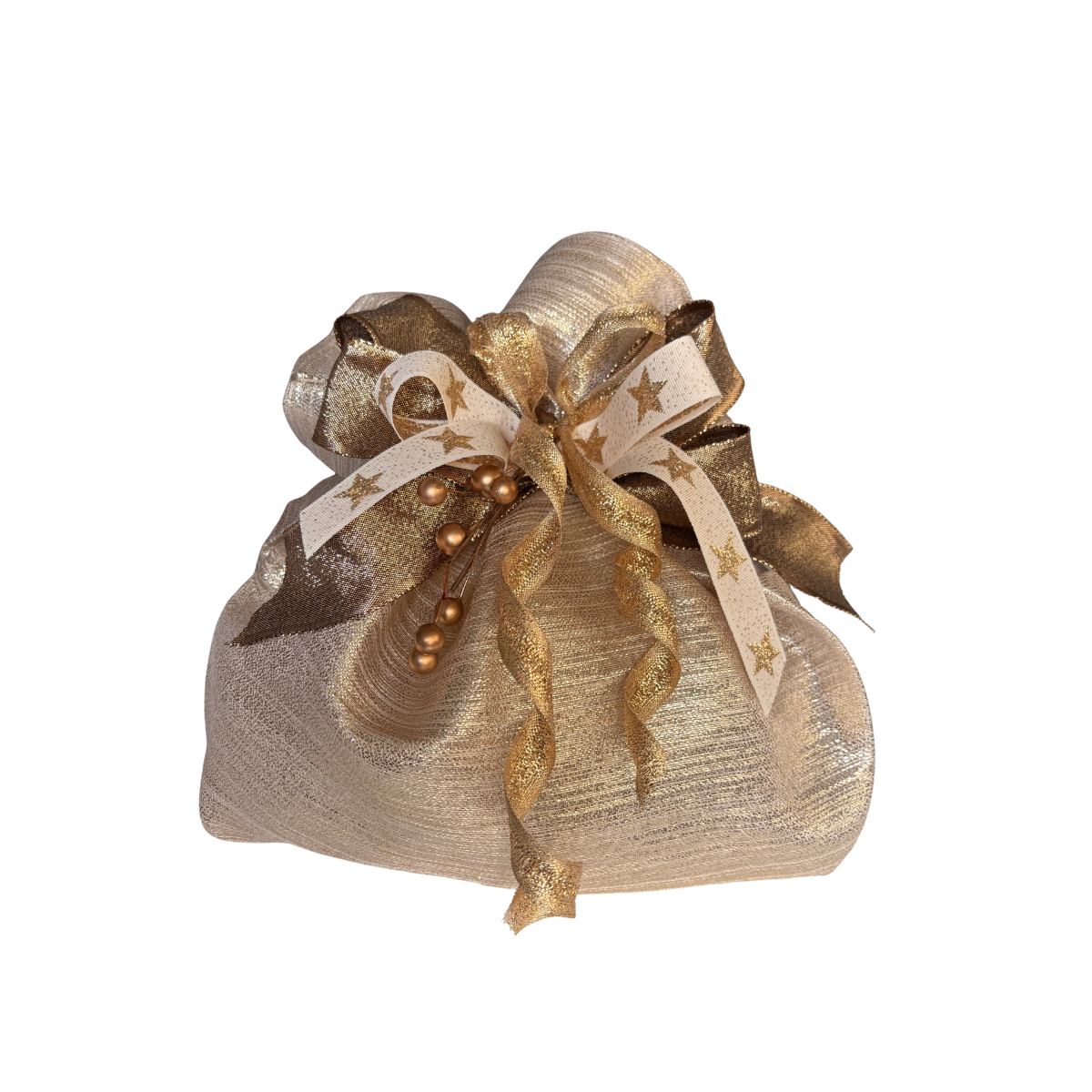 Sacco Porta panettone in Tessuto oro. Il porta panettone è ideale per pasticcerie artigianali per confezioni di Natale come il panettone preincartato.
