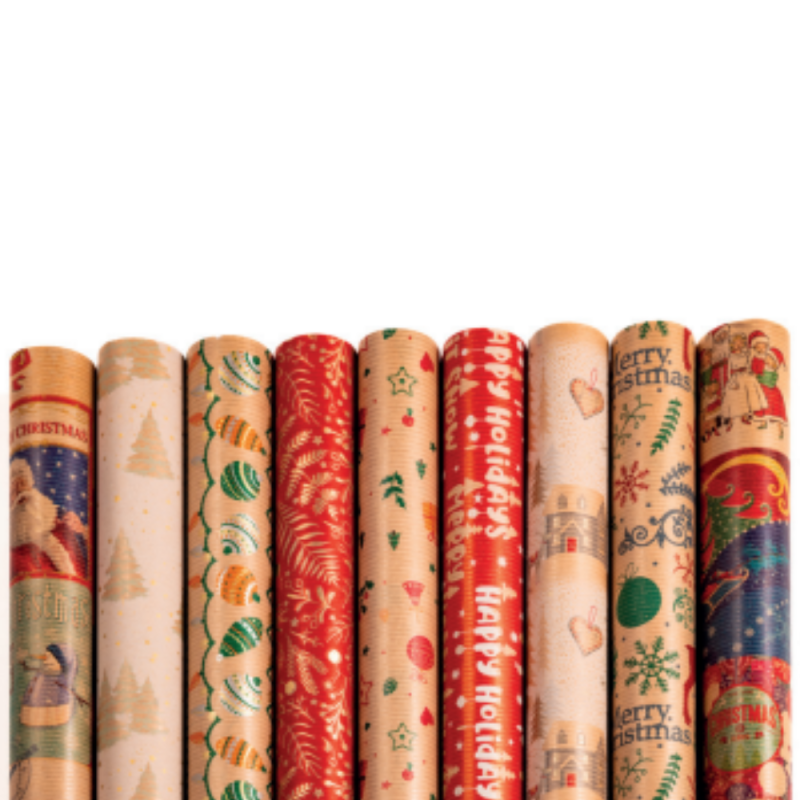 Carta da regalo kraft con stampa fantasie assortite a tema Natale. Ideale per creare un packaging originale e sempre diverso per i tuoi prodotti.