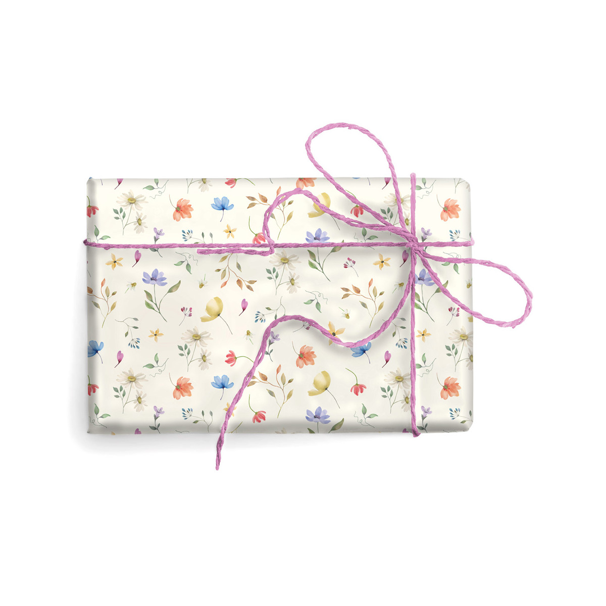 Carta da regalo primaverile con stampa fiorellini colorati. Carta delicata per ogni categoria commerciale.