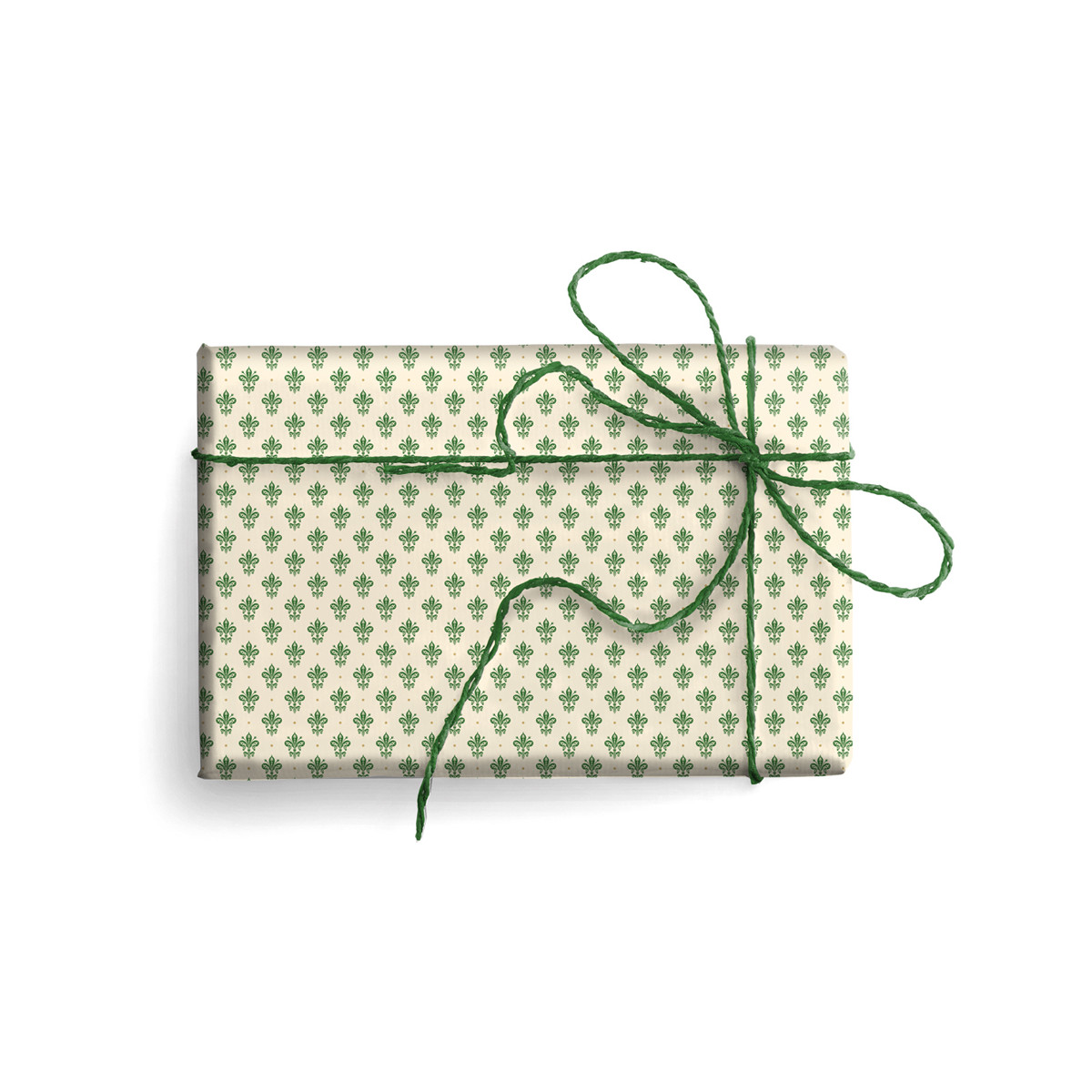 Carta regalo avorio con fantasia Giglio fiorentino in verde. Elegante carta, perfetta per una confezione sempre azzeccata, qualunque sia l'occasione e il settore commerciale.