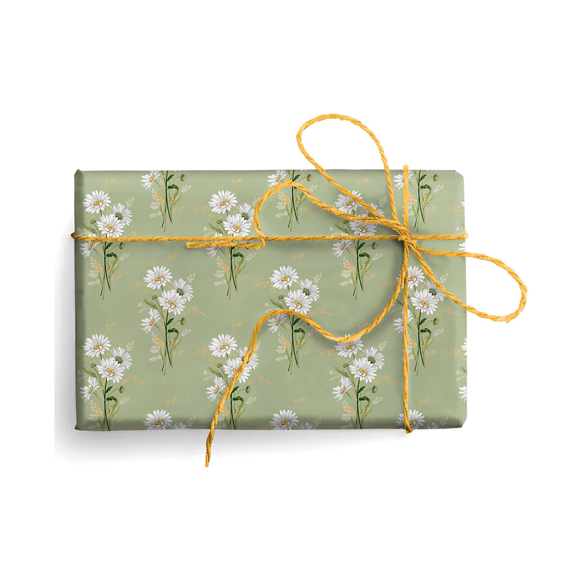 Fogli di carta primaverile, con stampa margherite bianche su uno sfondo verde salvia. Ideale per confezioni regalo di ogni tipo.