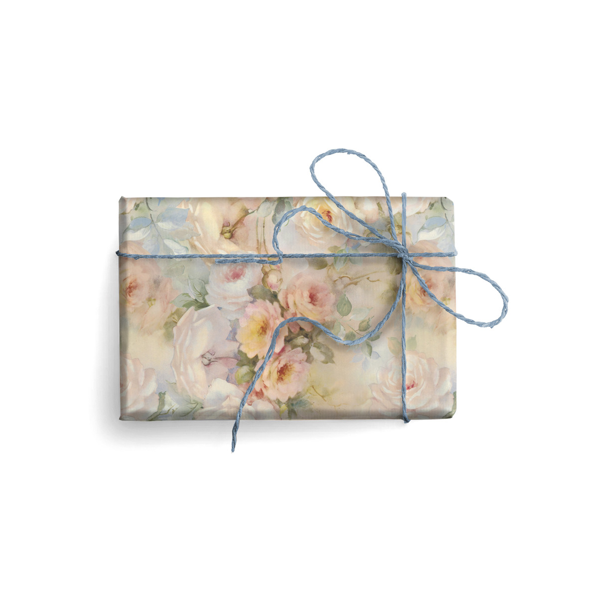Fogli di carta con stampa delicate rose sfumate. Ideale per confezioni eleganti e raffinate.