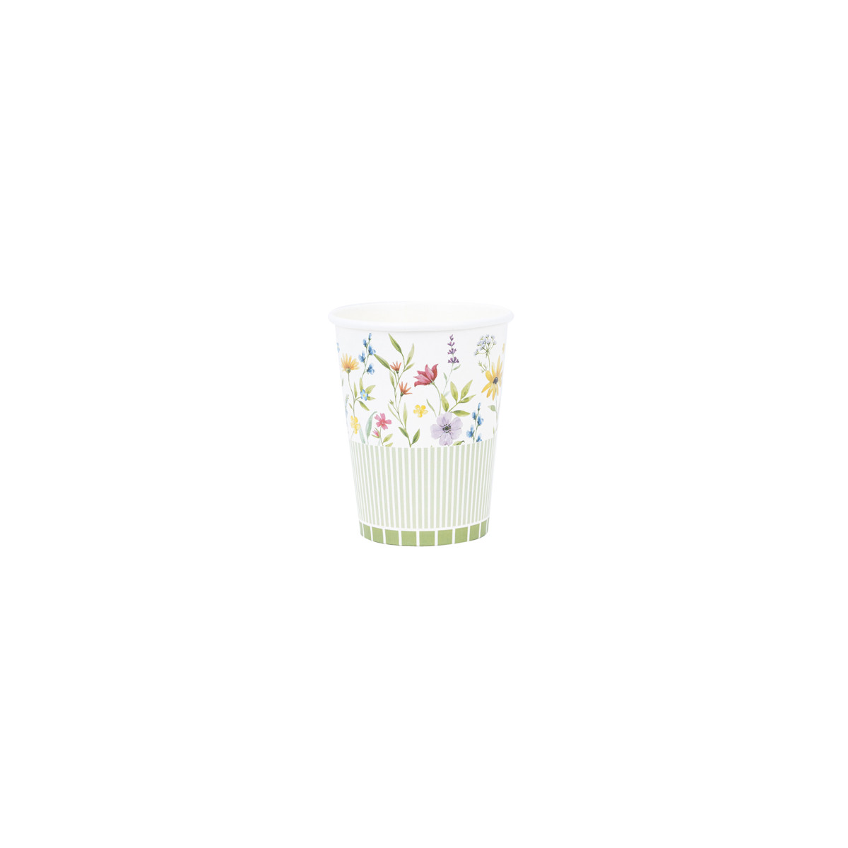 Bicchiere in carta con fantasia floreale. Disponibile i piatti e tovaglioli della stessa Linea Le Jardin.