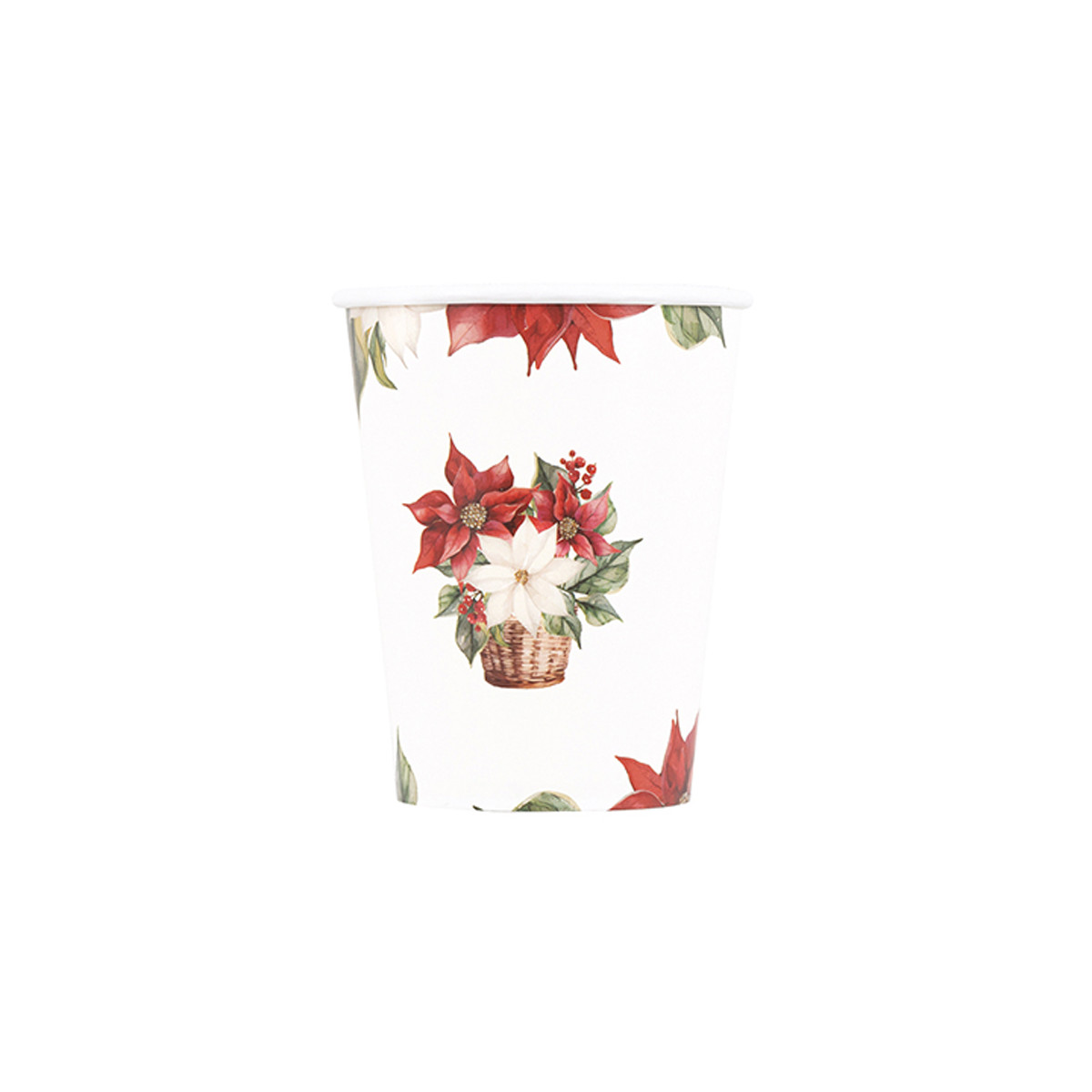Bicchieri in carta con stampa stella di Natale. Da abbinare ai tovaglioli e piatti della stessa Linea.
