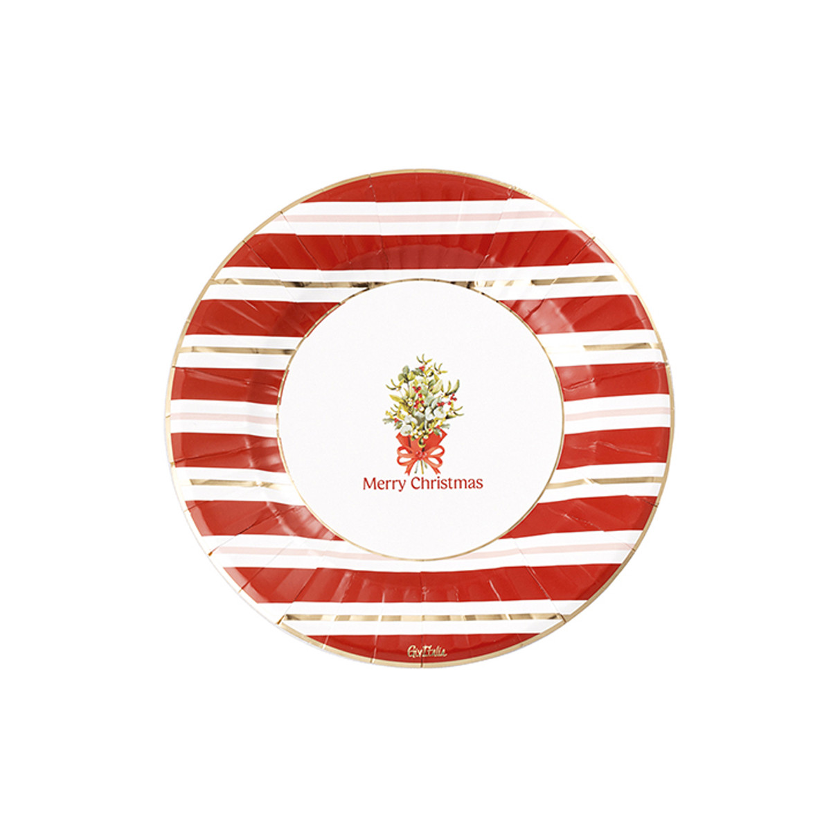 Piatti in carta Christmas Party, con stampa scritta Merry Christmas e mazzolino di fiorellini natalizi. Da abbinare ai bicchieri e tovaglioli della stessa linea.
