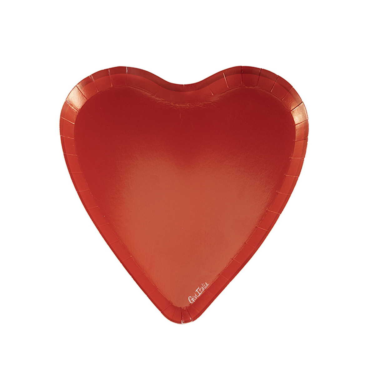 Piatti in carta a forma a cuore rosso. Vendita a confezione da 8 pezzi.