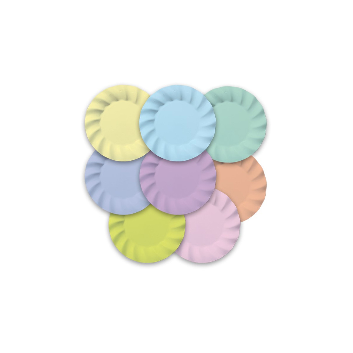 Questi piatti dai colori assortiti sono ideale per feste e party per bambini. Puoi personalizzare la tua festa, con palloncini in tinta unita color pastello.