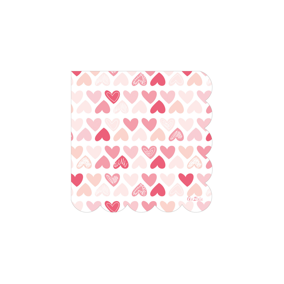 Tovaglioli smerlati in carta con fantasia cuoricini colorati. Da abbinare ai piatti a cuore rossi in vendita sul nostro sito. Ideale per allestire le tavole in occasione di San Valentino o la festa della mamma.