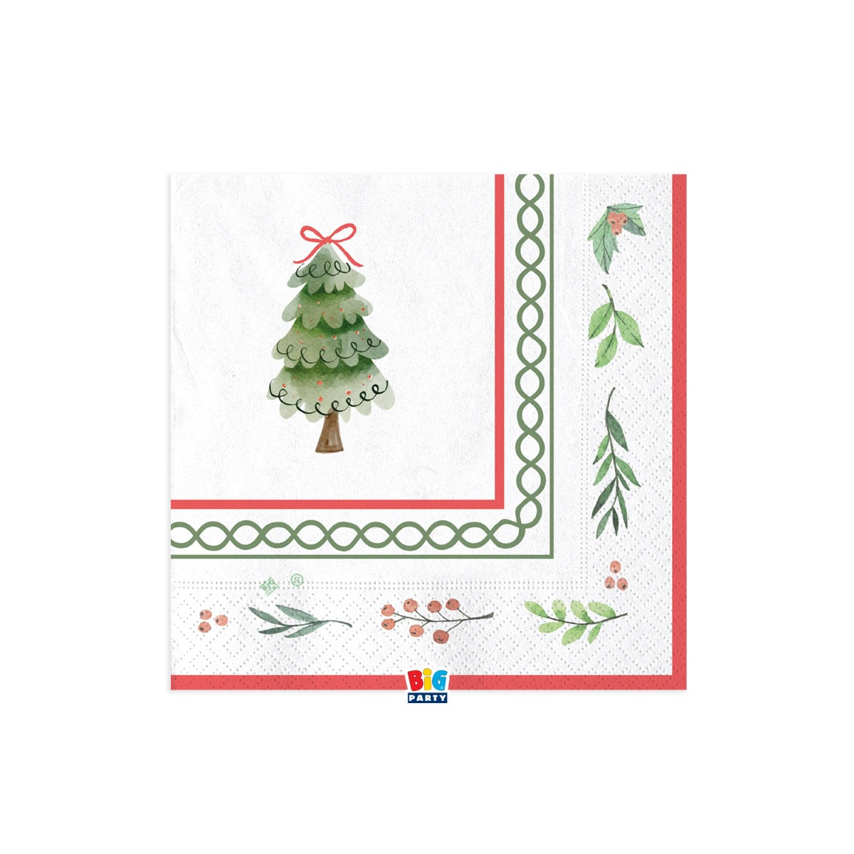 Tovaglioli natalizi 33x33cm con stampa alberello verde. In vendita anche i piatti della stessa Linea.