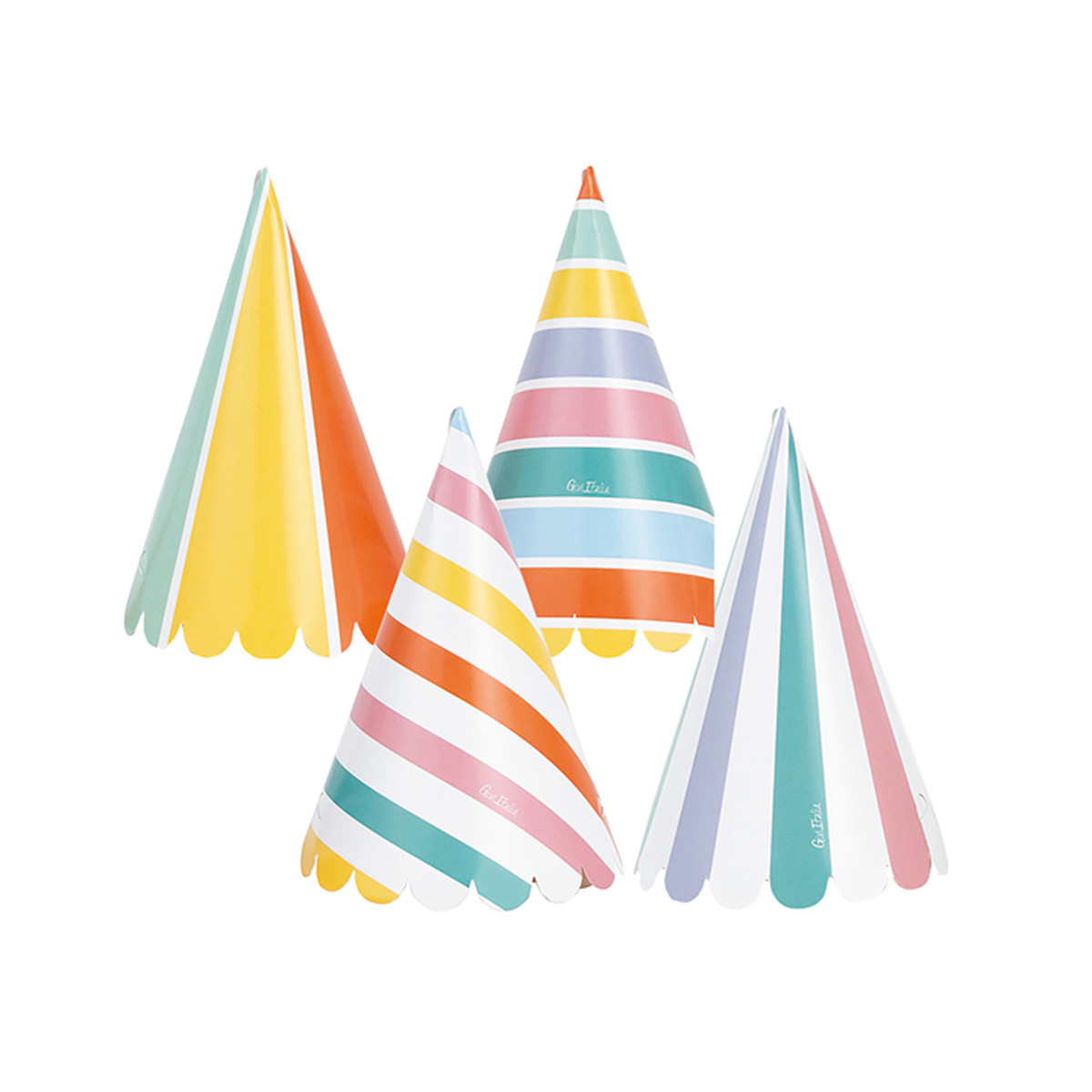 Cappellini Strips a righe colorate tema Circo, ideali per feste, compleanni e animazioni per bambini.