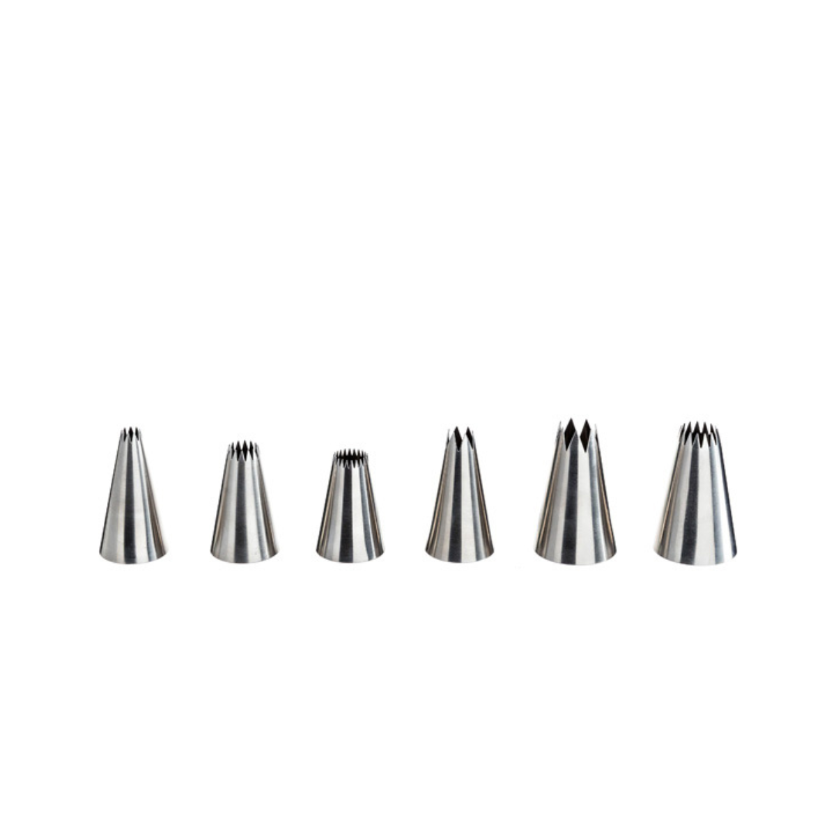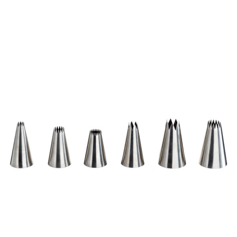 Set di beccucci pasticceria Punta Stella, confezione da 6 pezzi. Misura 2,5x4cm. In acciaio inox AISI 304.