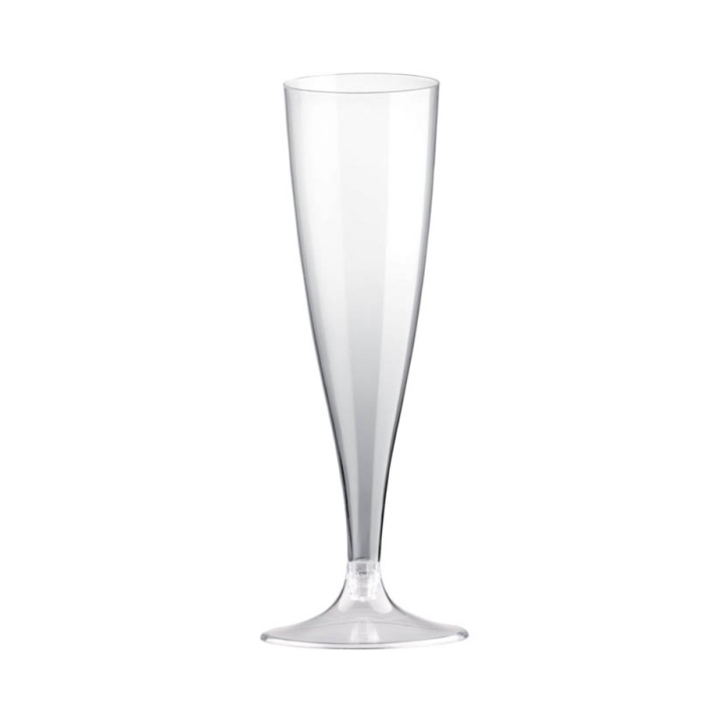 Flute da Champagne in plastica trasparente. Materiale polistirolo riciclabile ed infrangibile.