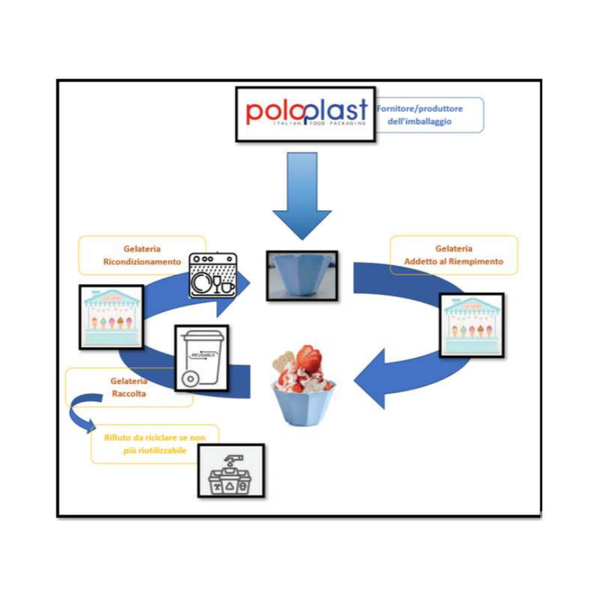 - Effettuato direttamente nel punto vendita per consentire il riutilizzo dell’imballaggio