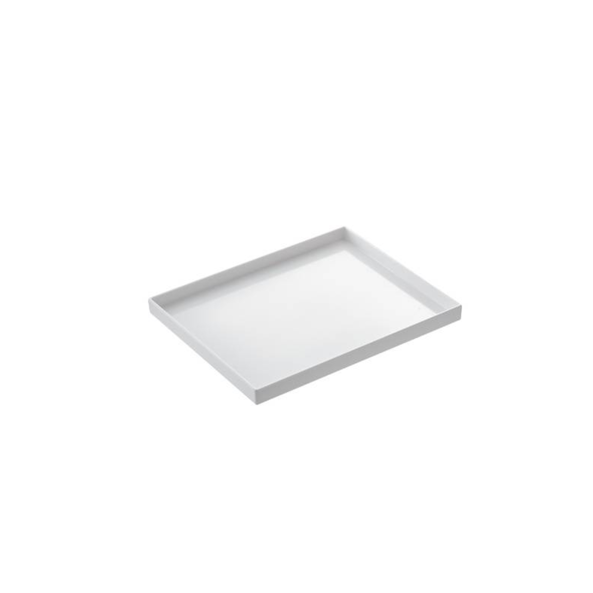 Vassoio della linea Venezia bianco in melanina. Prodotto idoneo al contatto con tutti i tipi di alimenti. Disponibile in più formati.