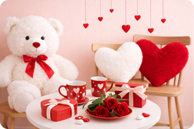 La collezione include peluche, scatole a cuore e scatole rosse, nastri coordinati, cuscini e pendenti a forma di cuore, rose rosse decorative, oltre a vasi, tazze e candele ideali per completare ogni proposta regalo con un tocco di calore e raffinatezza. Ogni elemento è pensato per valorizzare confezioni e allestimenti, rendendoli irresistibili e carichi di significato.
