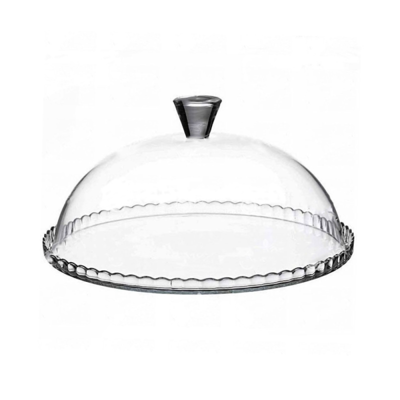 Piatto con campana in vetro trasparente per torte. Idoneo al contatto con alimenti. Della Marca Pasabahce: il secondo produttore europeo e mondiale di articoli in vetro.