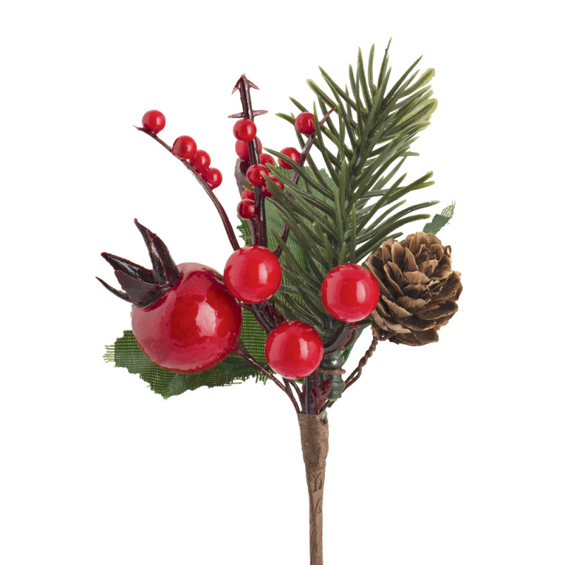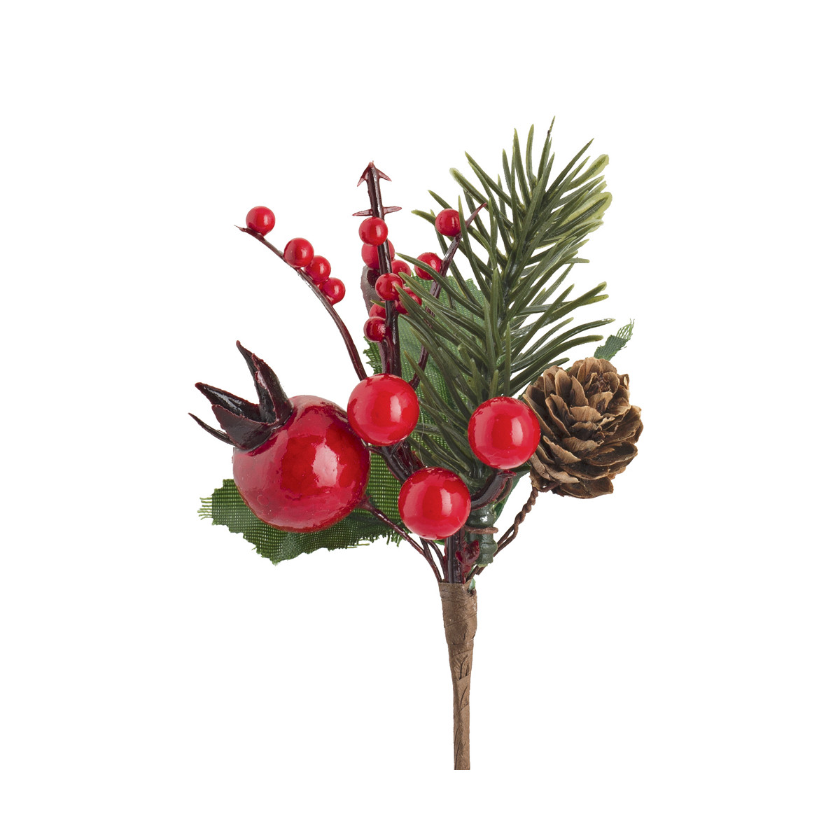 Pick Pino Con Melograno Bacche e Pigne 10cm