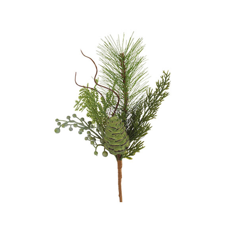 Pick Ramo di Pino Con Pigna Verde 28cm