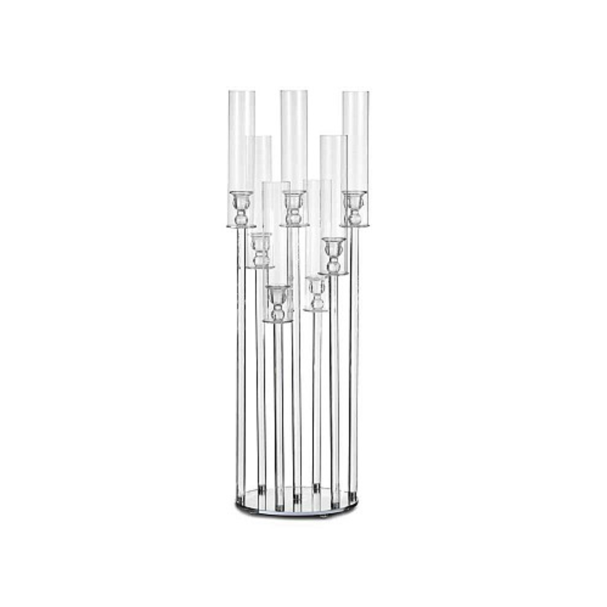 Candeliere a 7 fiamme, dal design elegante e raffinato. Realizzato in vetro trasparente con una struttura tonda, questo candeliere si distingue per la sua originalità e dona un tocco di luce e raffinatezza in ogni ambiente.