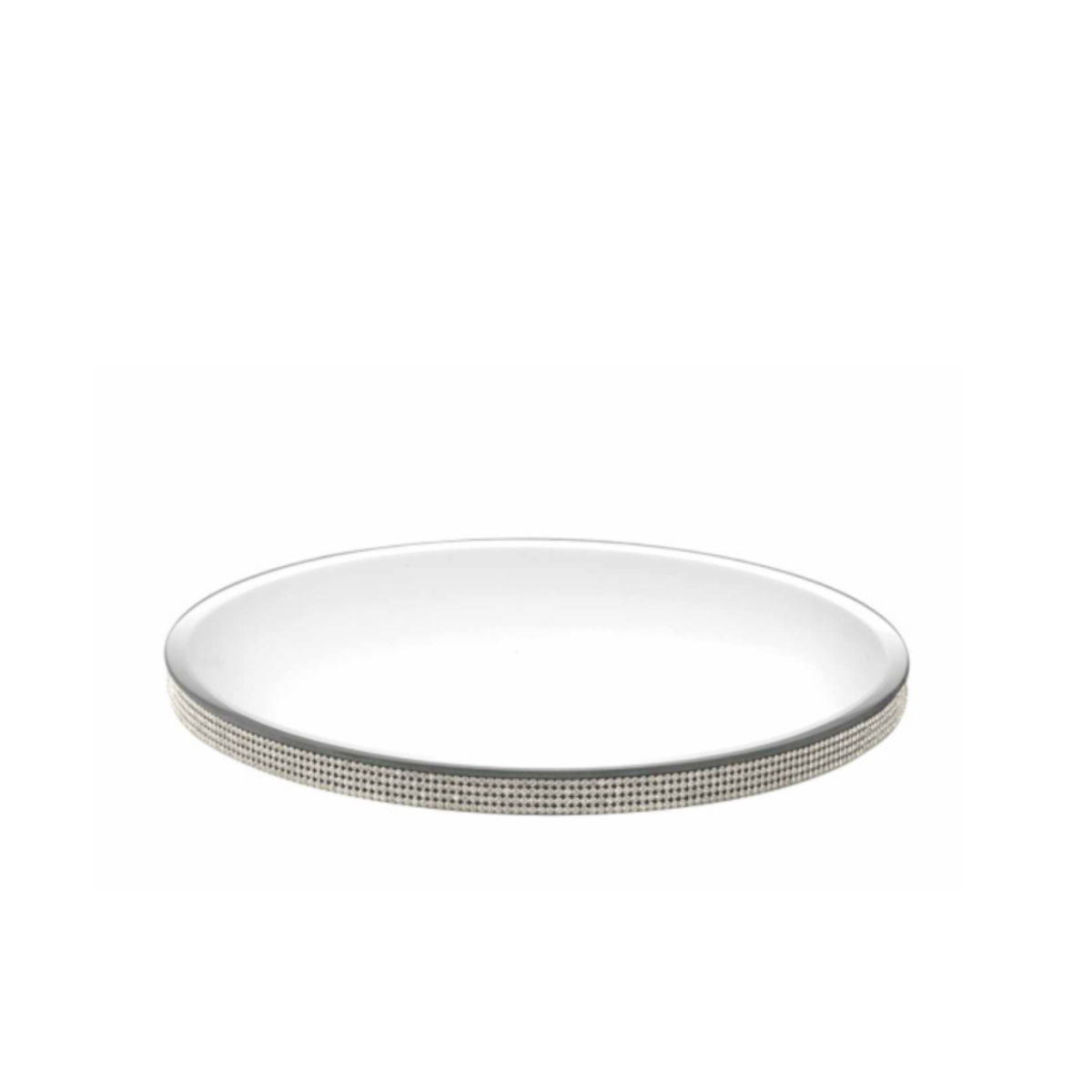 Specchietto tondo con bordo in strass. Ideale come decorazione per la casa, sia come sotto candela per dare un tono più chic all'ambiente, sia come decoro per la tavola e alzatina per centro tavola.