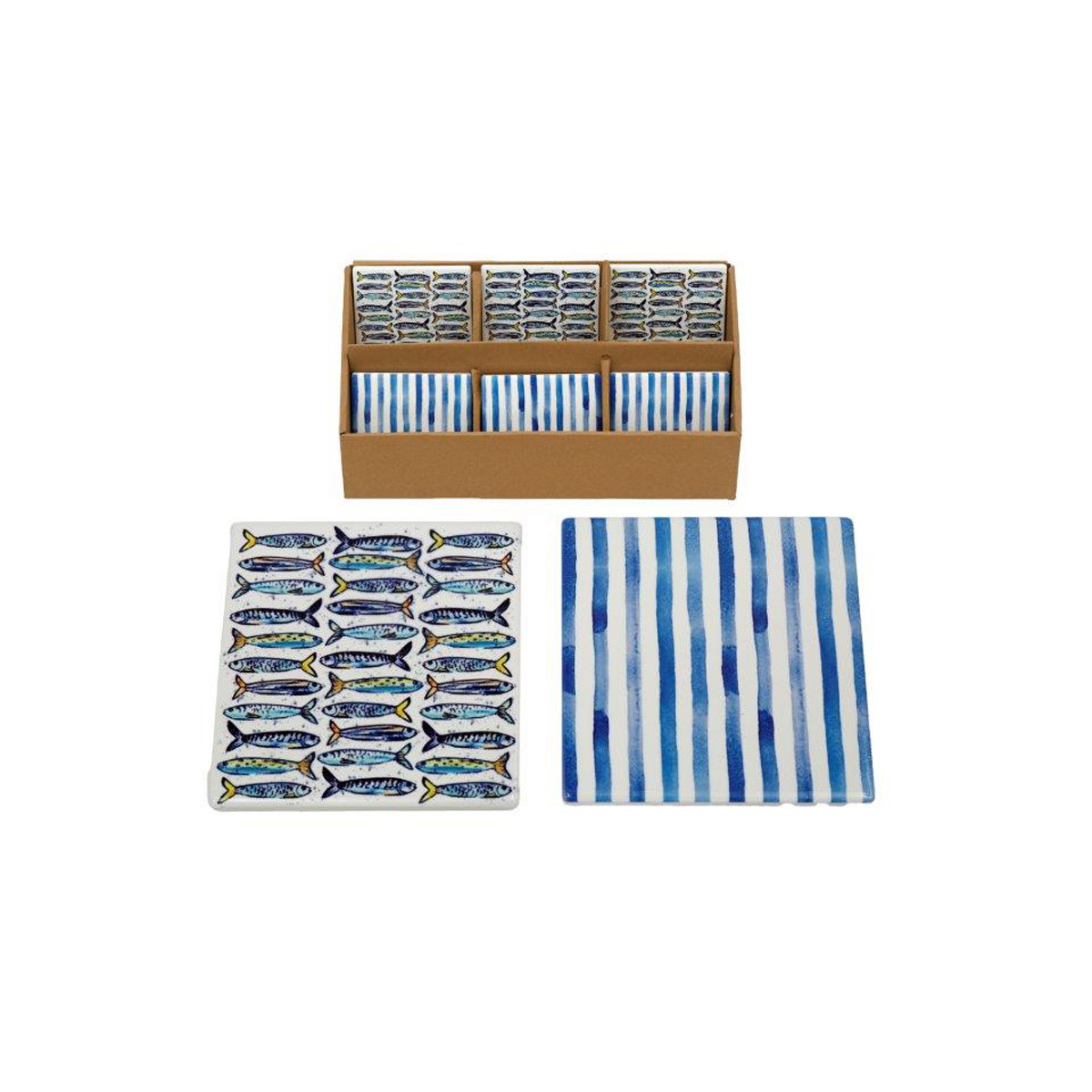 Decori: Sardine e righe azzurre.