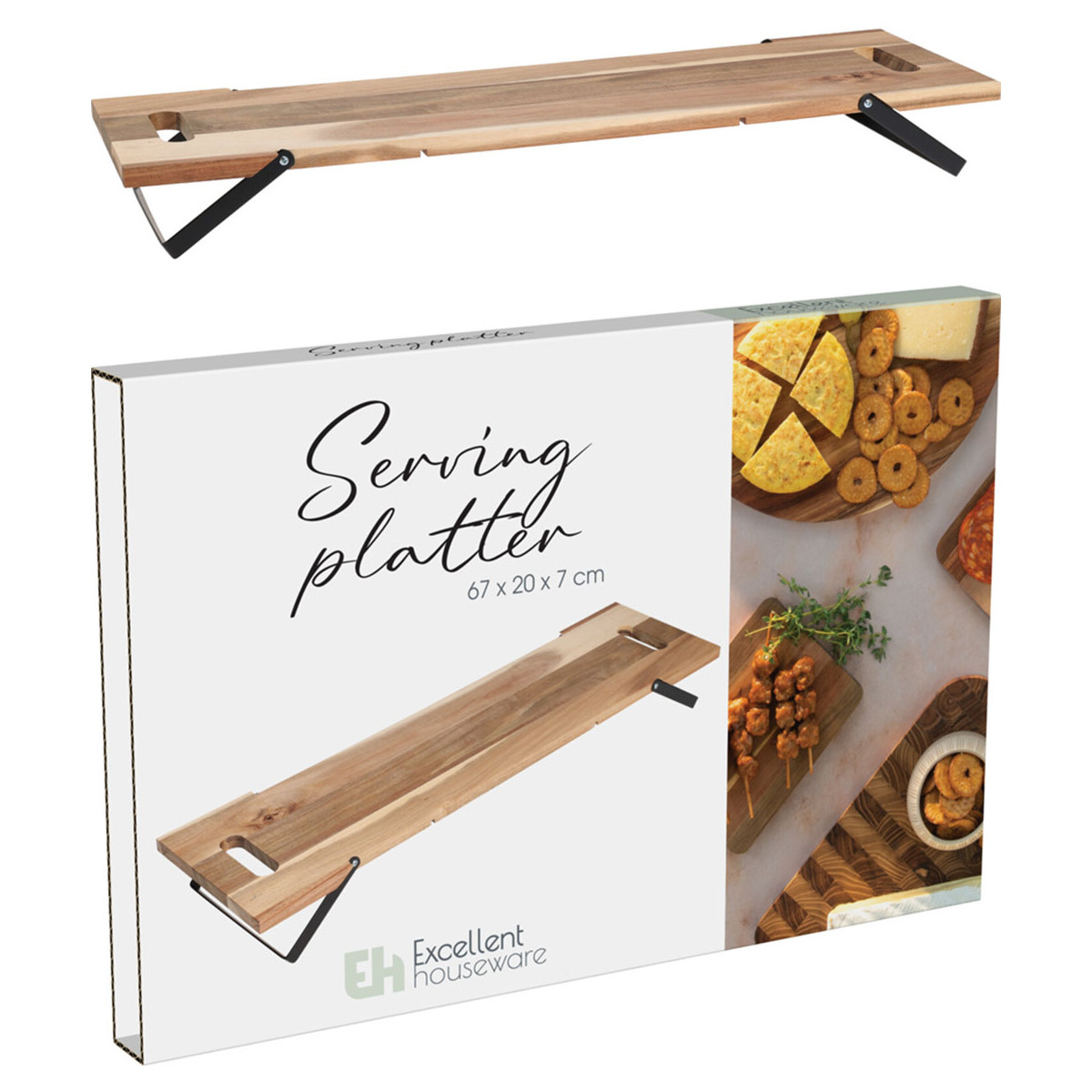 Vassoio in Legno di Acacia con Piedini in Metallo