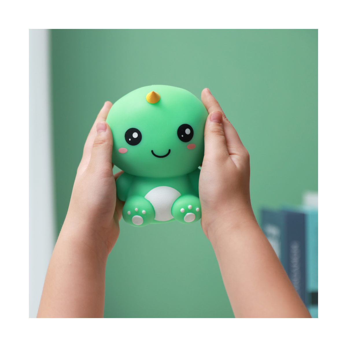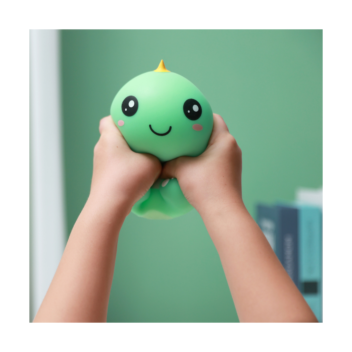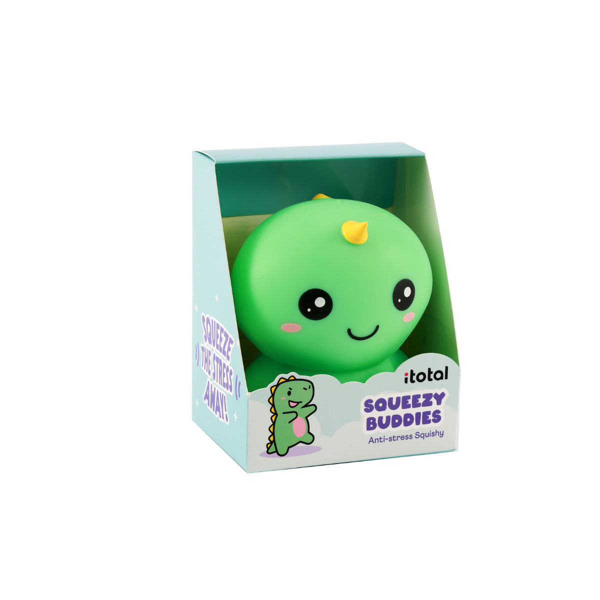 Grazioso e morbido dinosauro pensato per sciogliere lo stress. Antistress perfetto da stringere, da giocare o semplicemente da tenere vicino quando si cerca calma e conforto. Morbido e gommoso, perfetto come gadget o idea regalo.