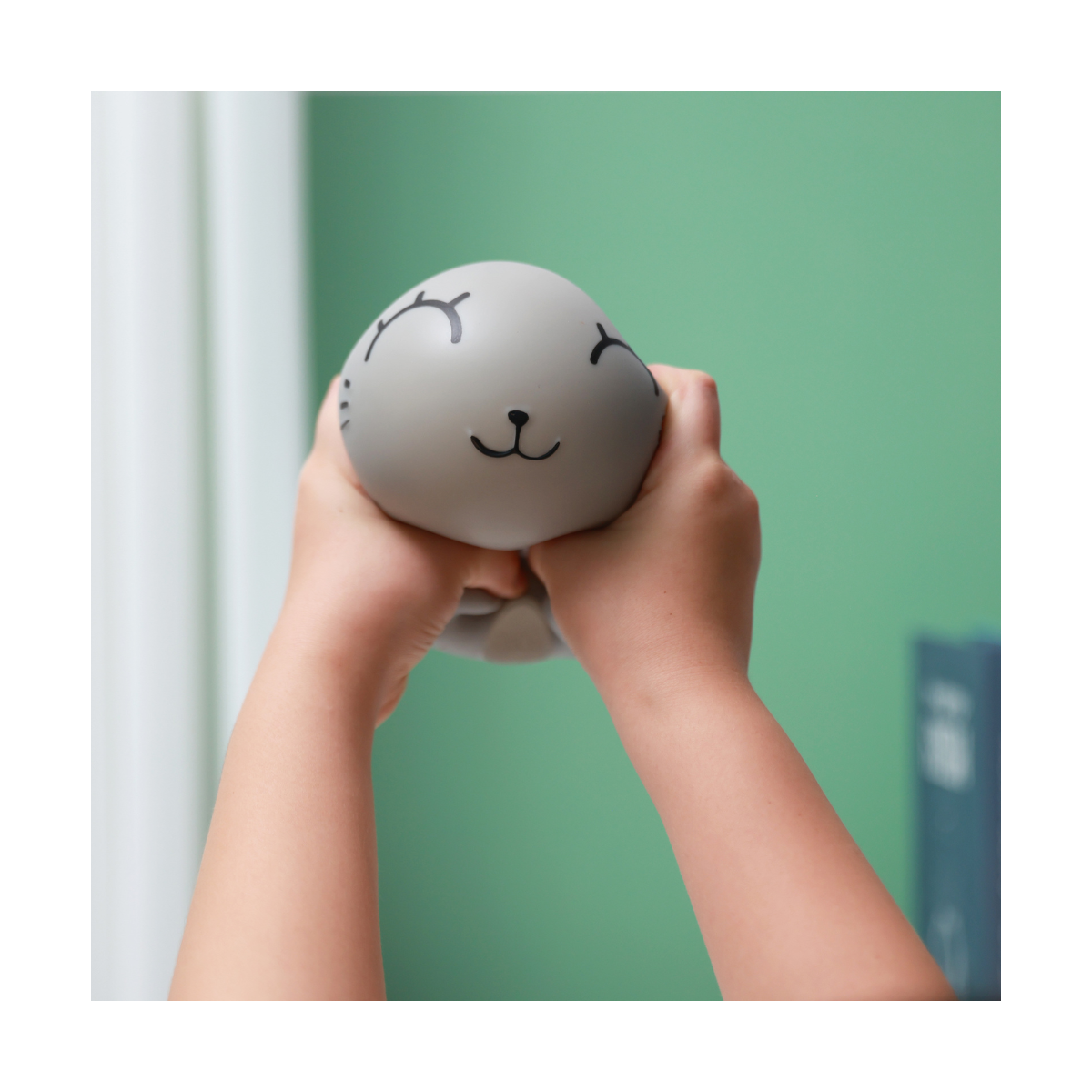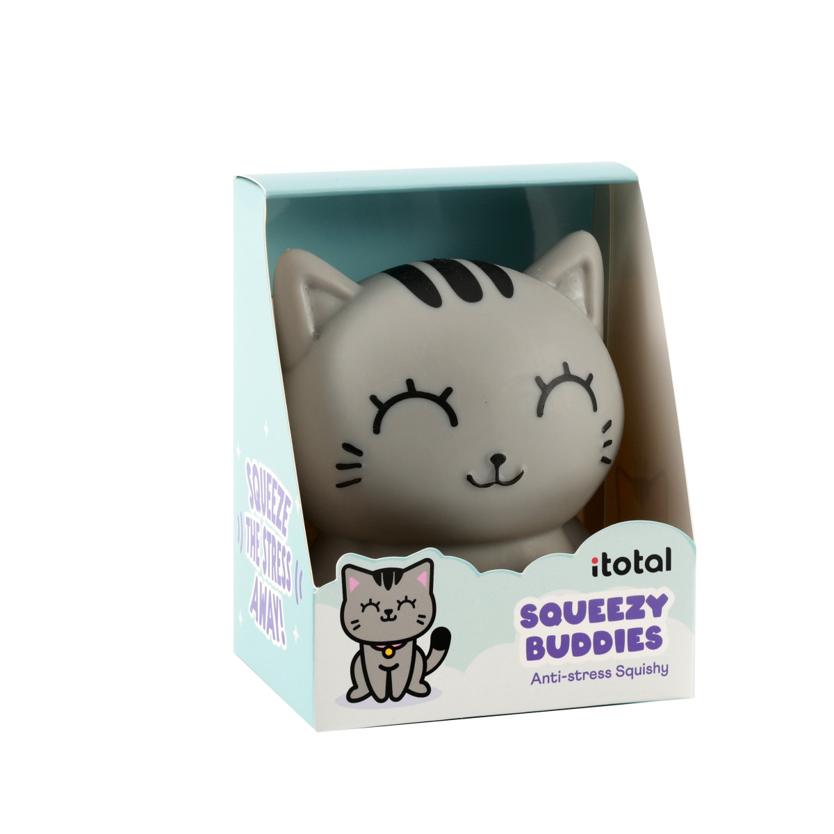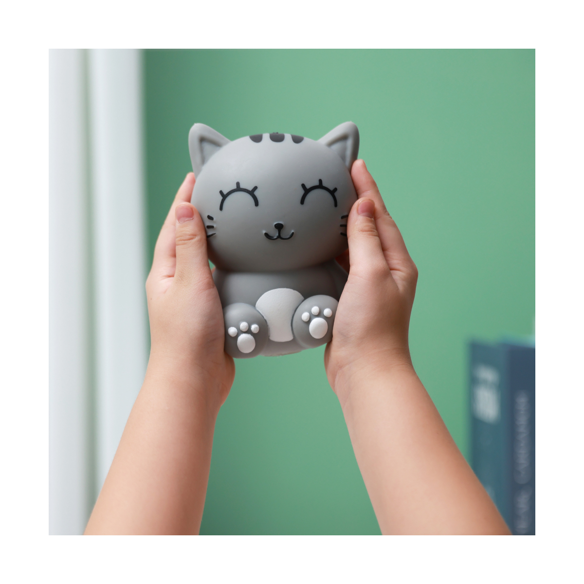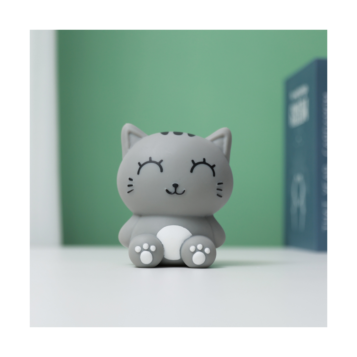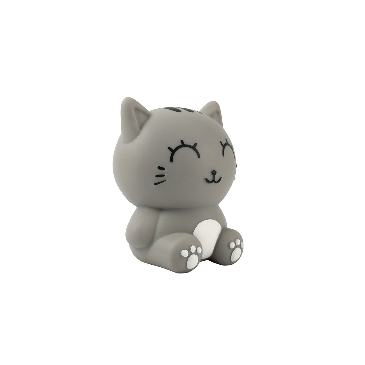 Grazioso e morbido gattino grigio pensato per sciogliere lo stress. Antistress perfetto da stringere, da giocare o semplicemente da tenere vicino quando si cerca calma e conforto. Morbido e gommoso, perfetto come gadget o idea regalo.